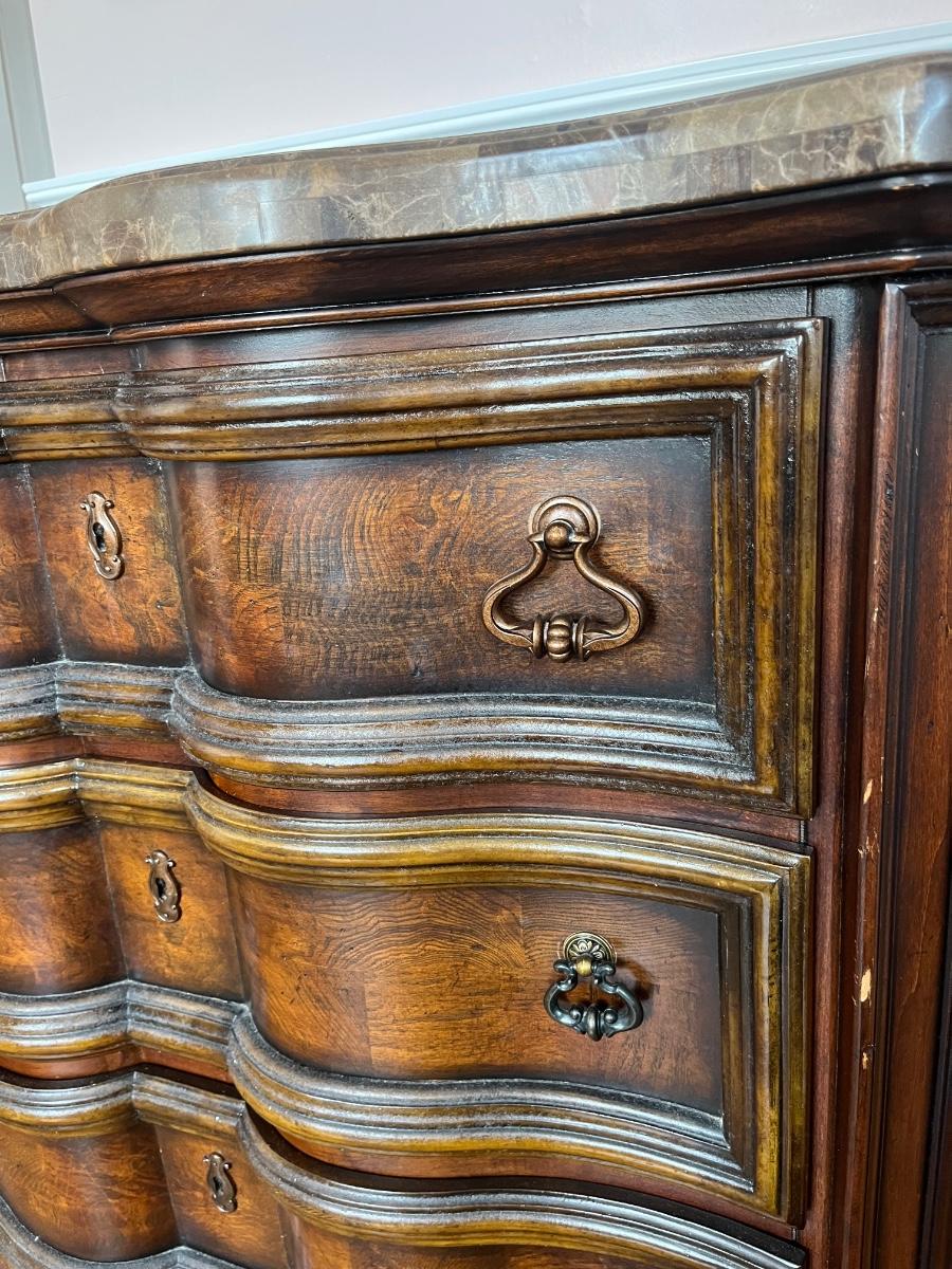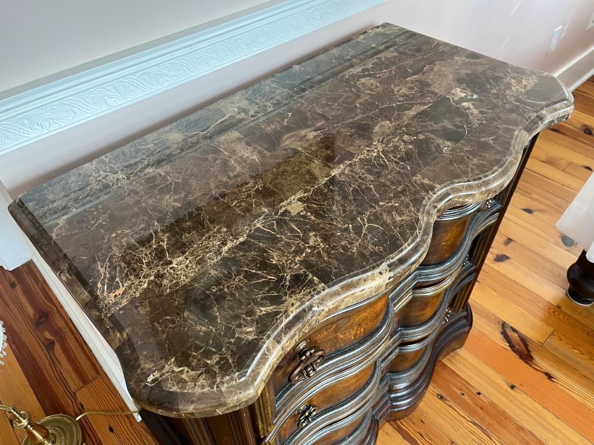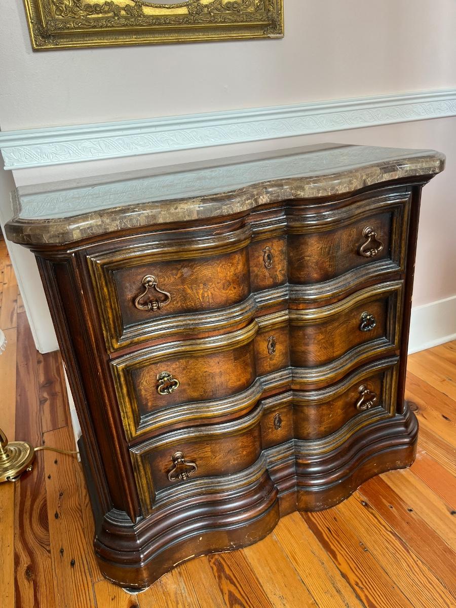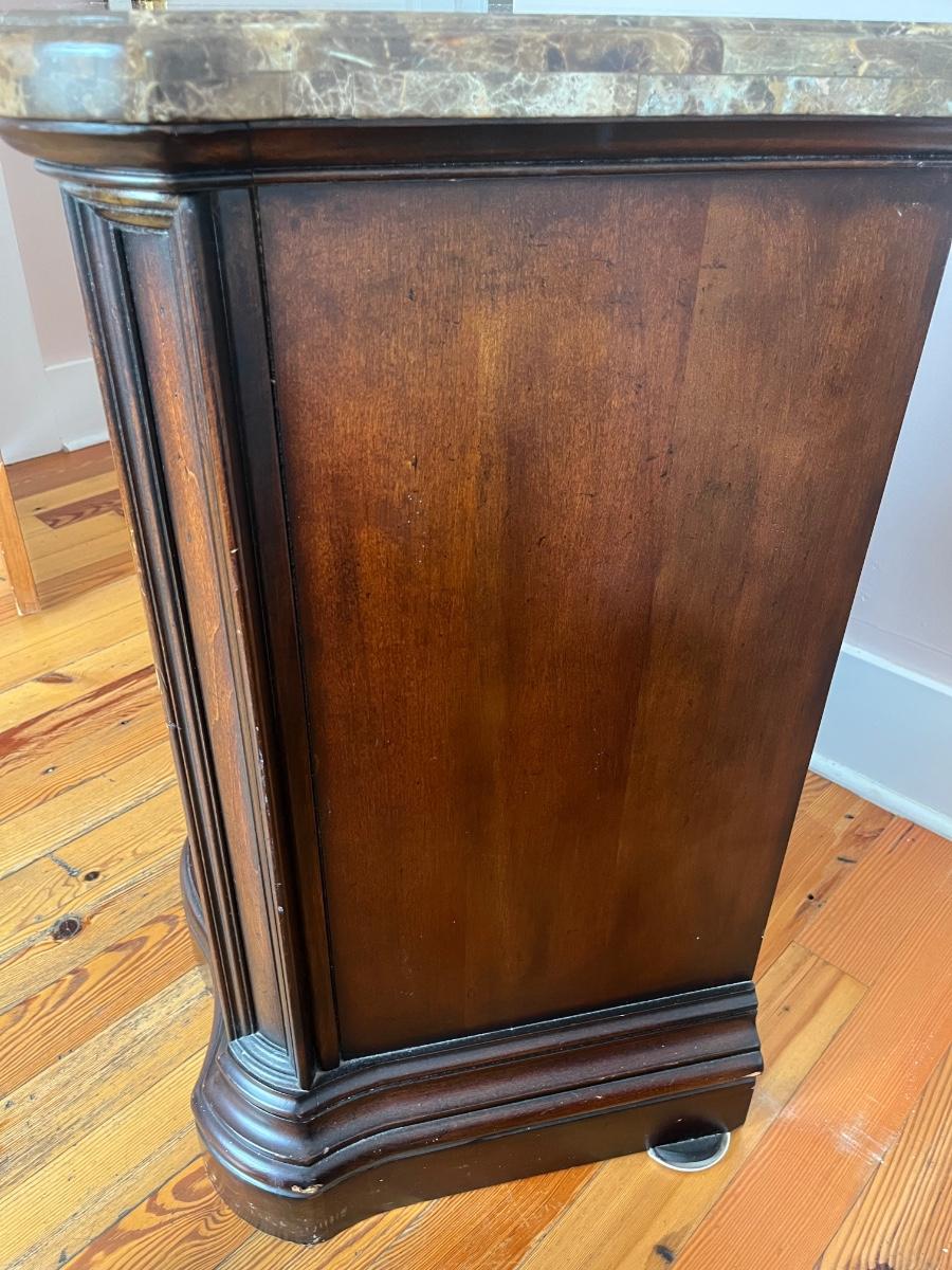 Ashley Furniture "Campania" marble top 3-drawer dresser; approx. 34" x 38" x 19"; good condition