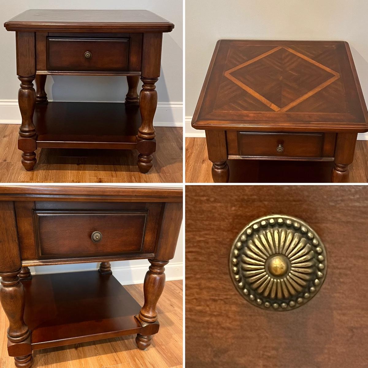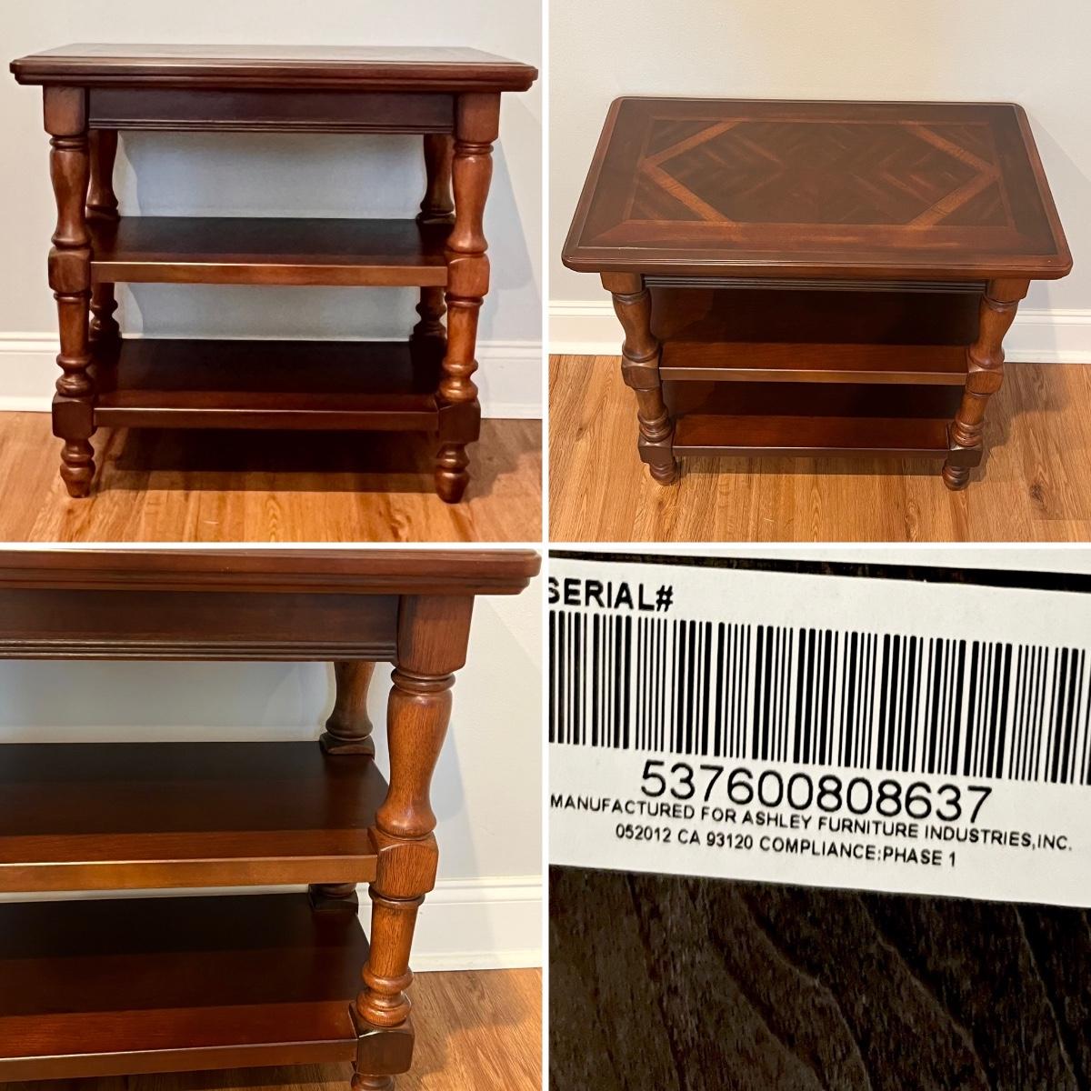 ASHLEY FURNITURE ~ Dark Brown Inlaid Wood ~ Set Of Three (3) Occasional Tables
