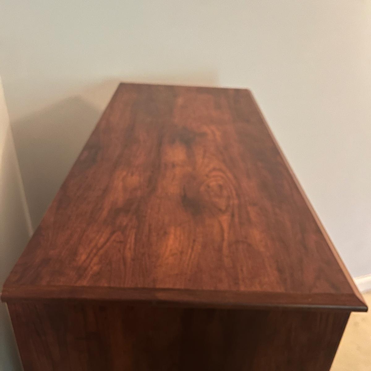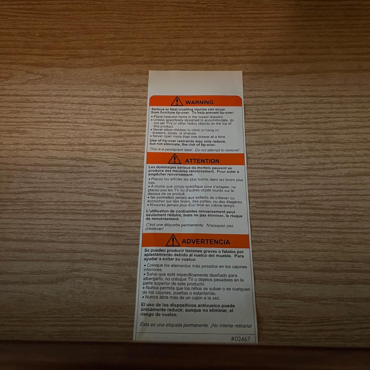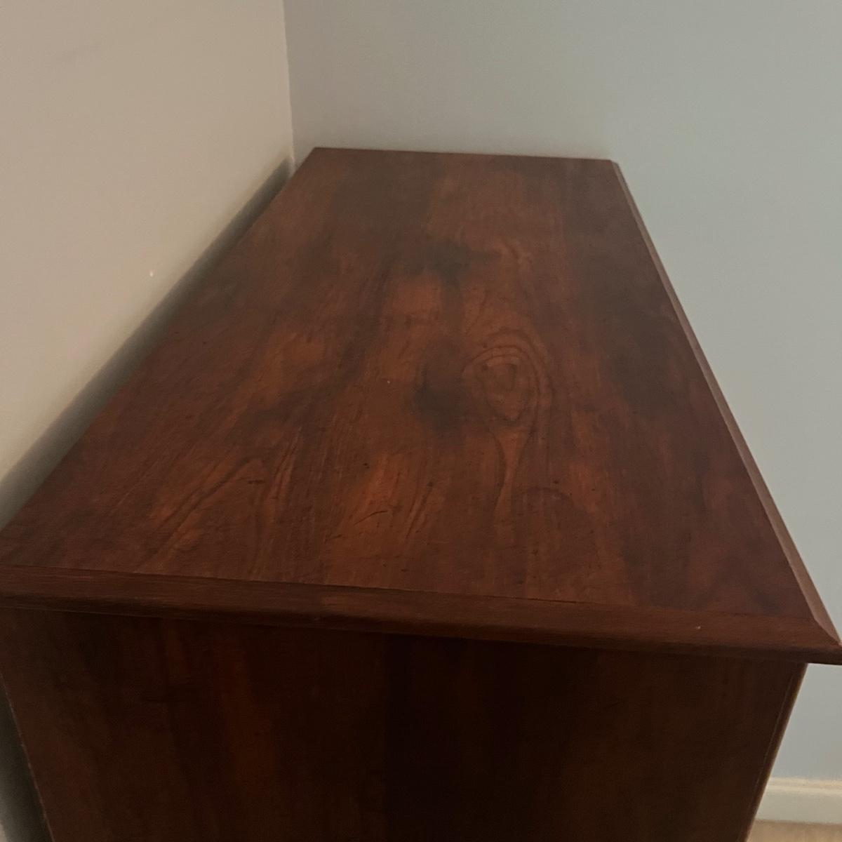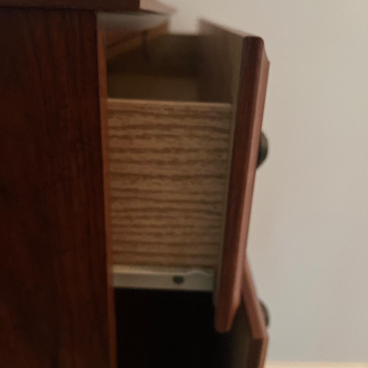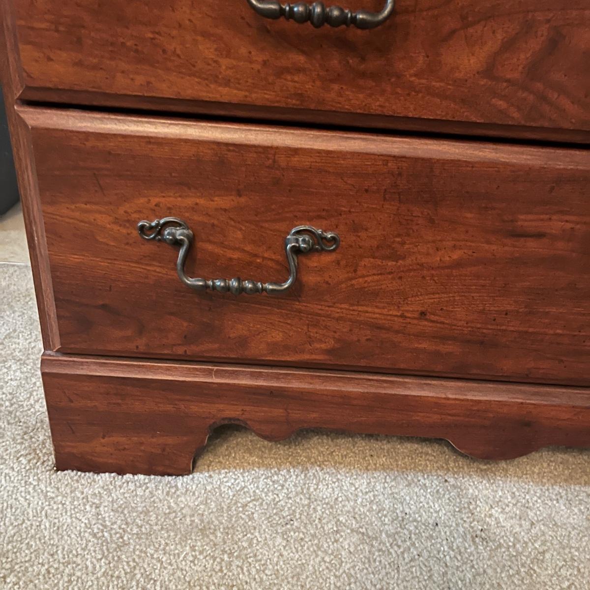 This Ashley Furniture chest of drawers has five drawers and measures 34” x 16” x 54”H. Chest appears to be pressed wood with metal track slides.
