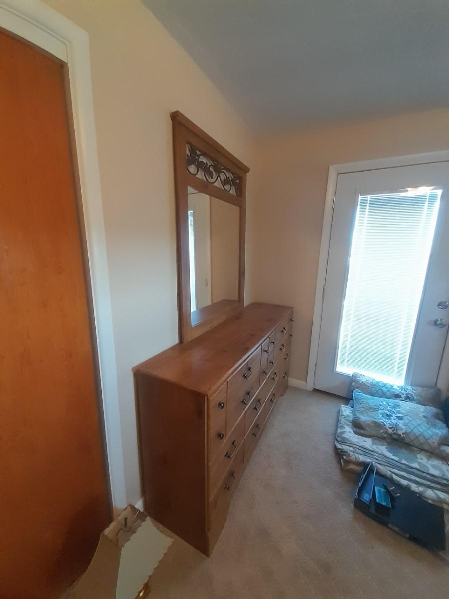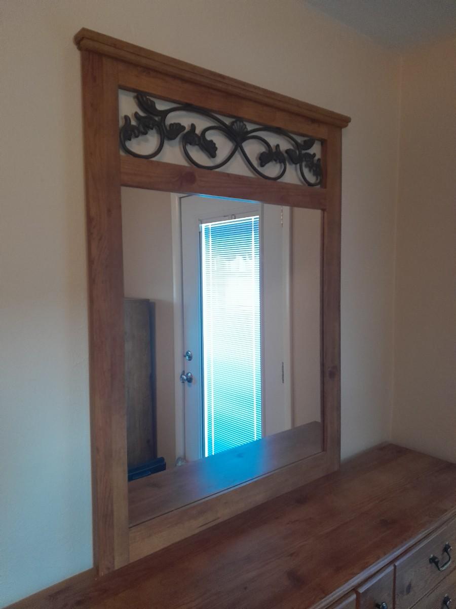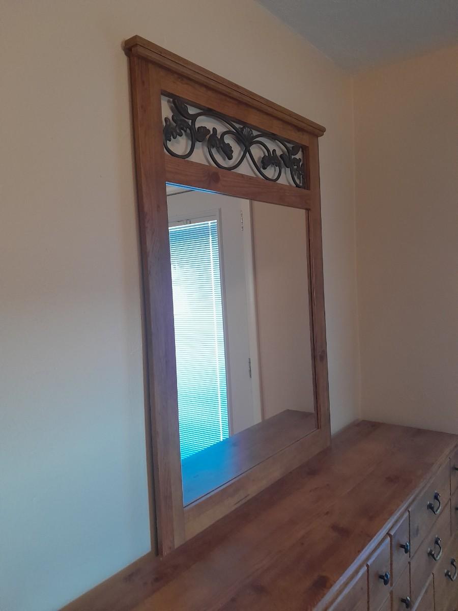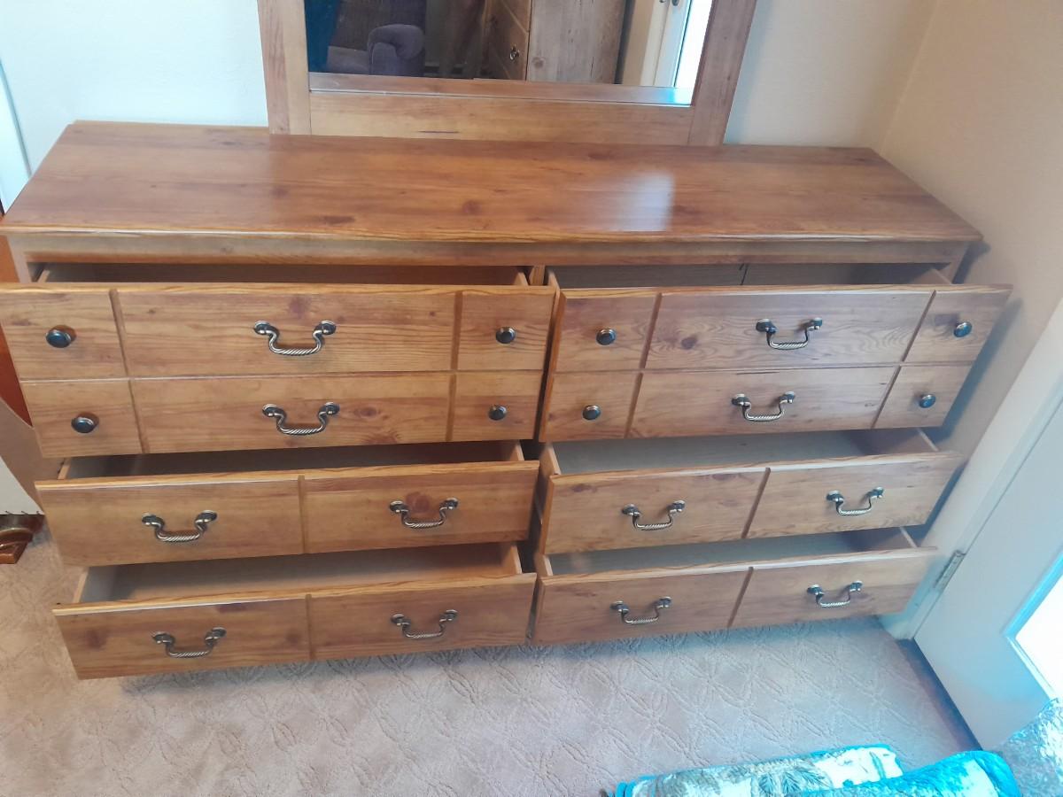 NICE ASHLEY FURNITURE SIX DRAWER LONG DRESSER 62" X 63" WITH MIRROR 47" X 35" REPLICATED PINE GRAIN