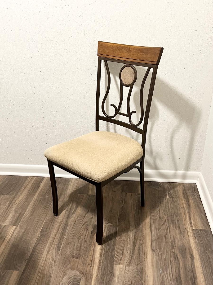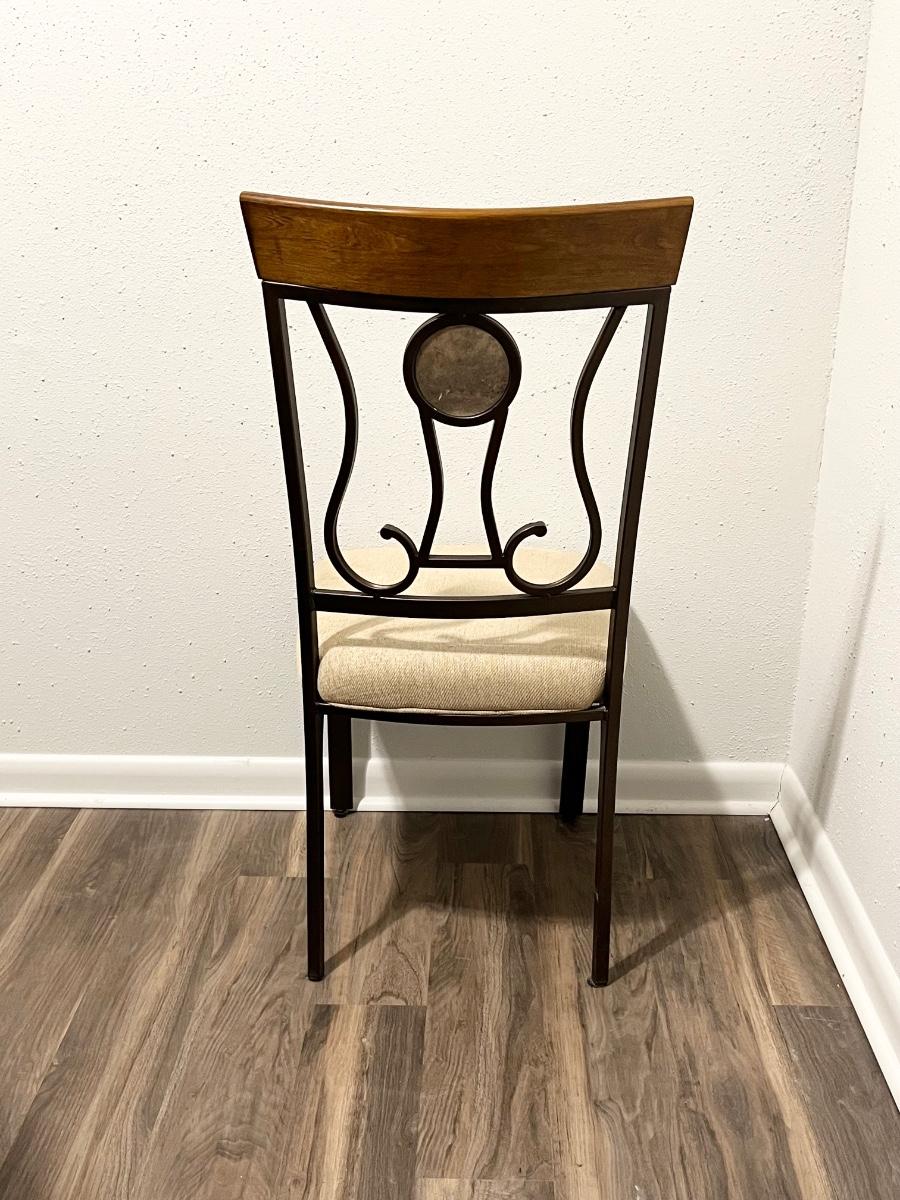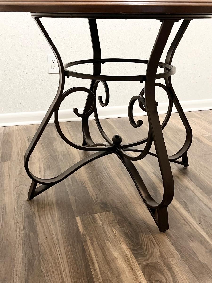 ASHLEY FURNITURE ~ Solid Wood With Inlaid Marble Style Top ~ Bronze Metal Base And Four (4) Matching Chairs ~ *Read Details