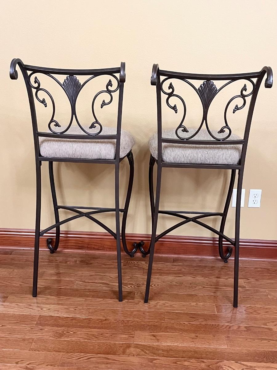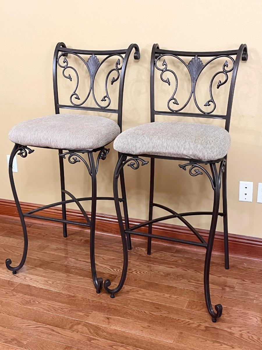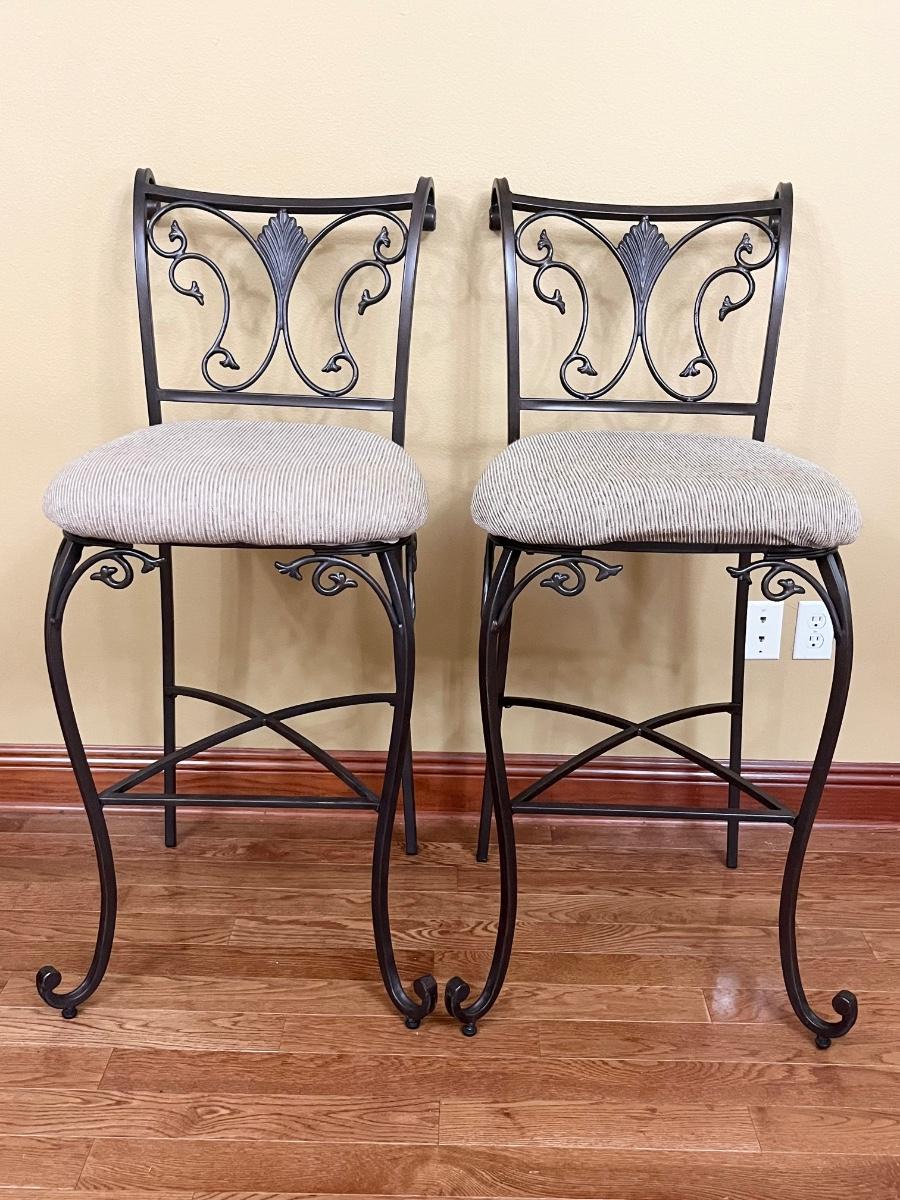 ASHLEY ~ Pair (2) ~ 30” Wrought Style Metal Bar Stools With A Bronze Finish