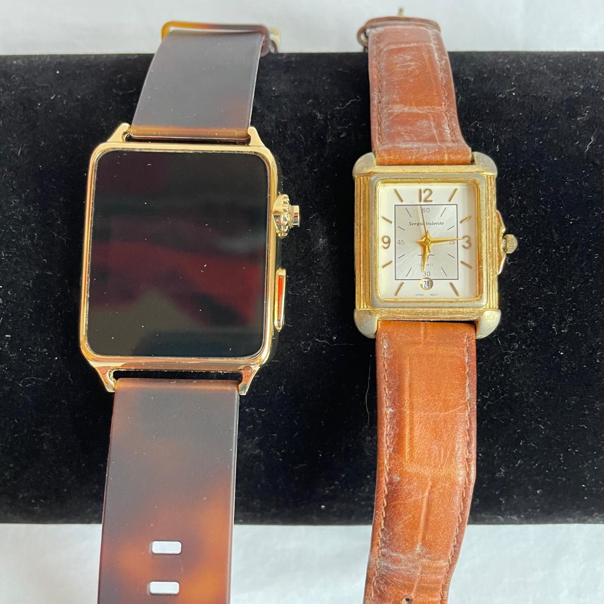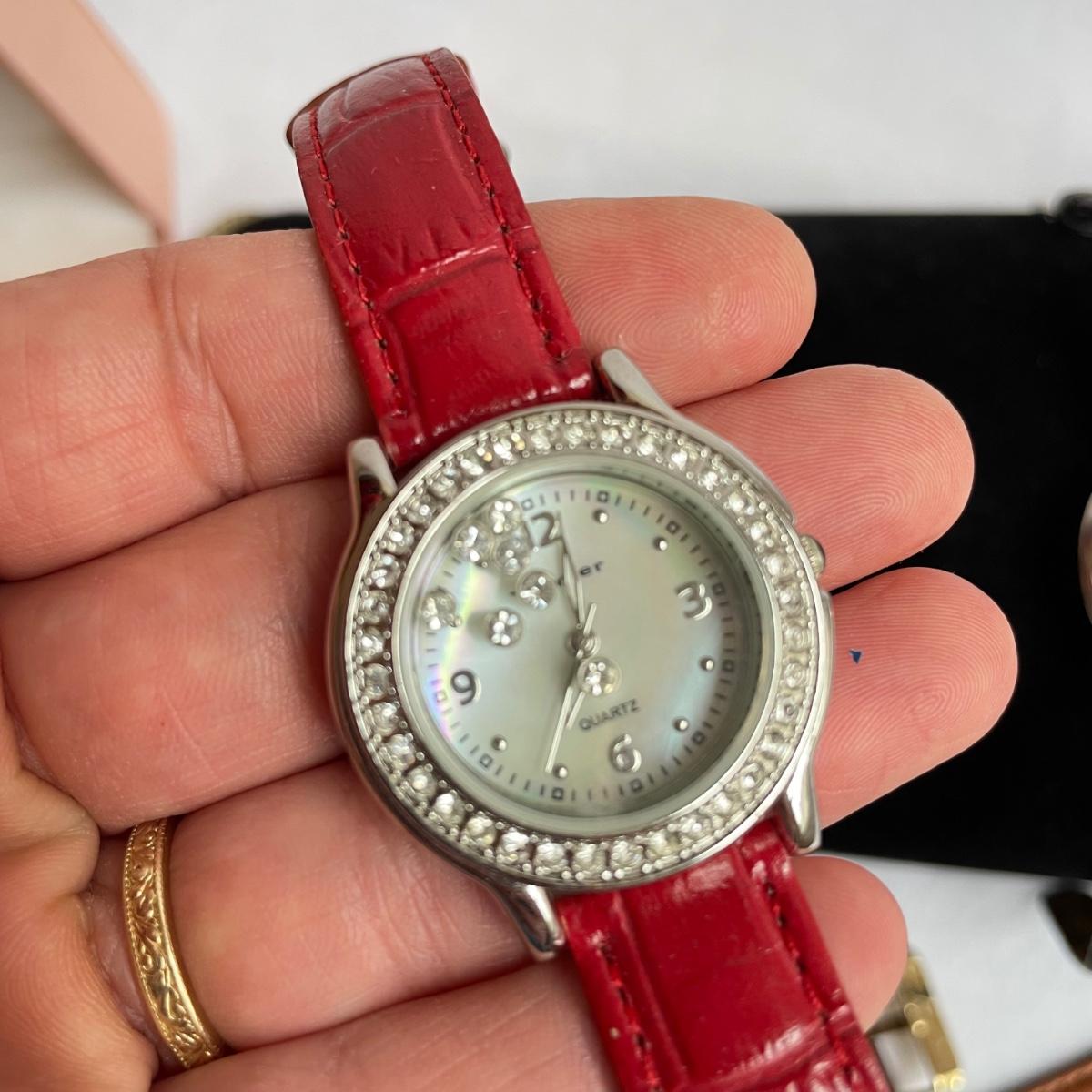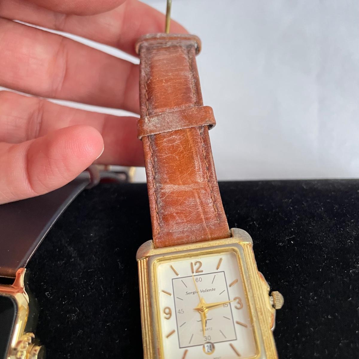 A nice selection of leather and faux leather banded watches including brands like Ashley, Fossil, Kim Rogers, Sergio Valente and more. The Ashley swatch collection includes five bands and eight face plate frames plus its original box. There is one digital watch that turned on when printed by its side button, all other watches were not tested. All bands are adjustable, some need cleaning. All sales are final. No returns or refunds. Please bid accordingly. Shipping available.