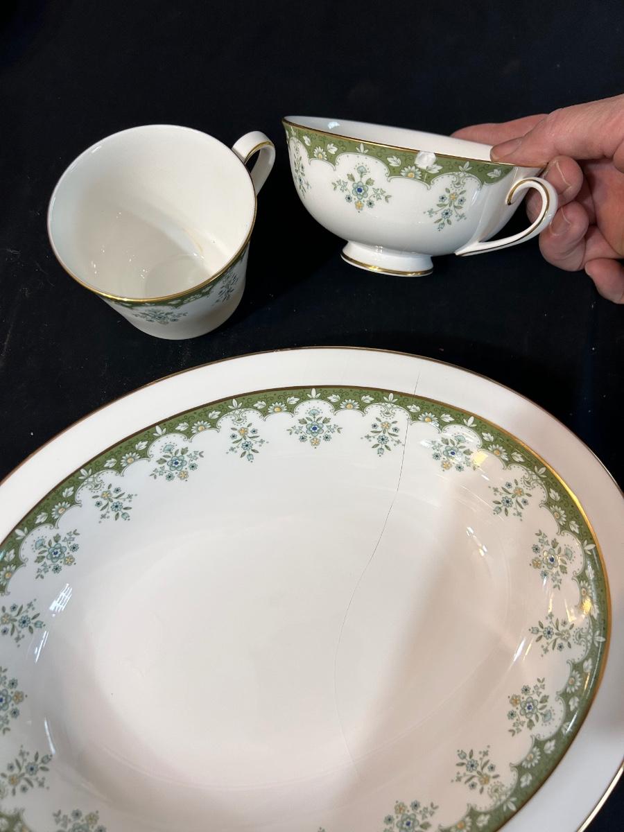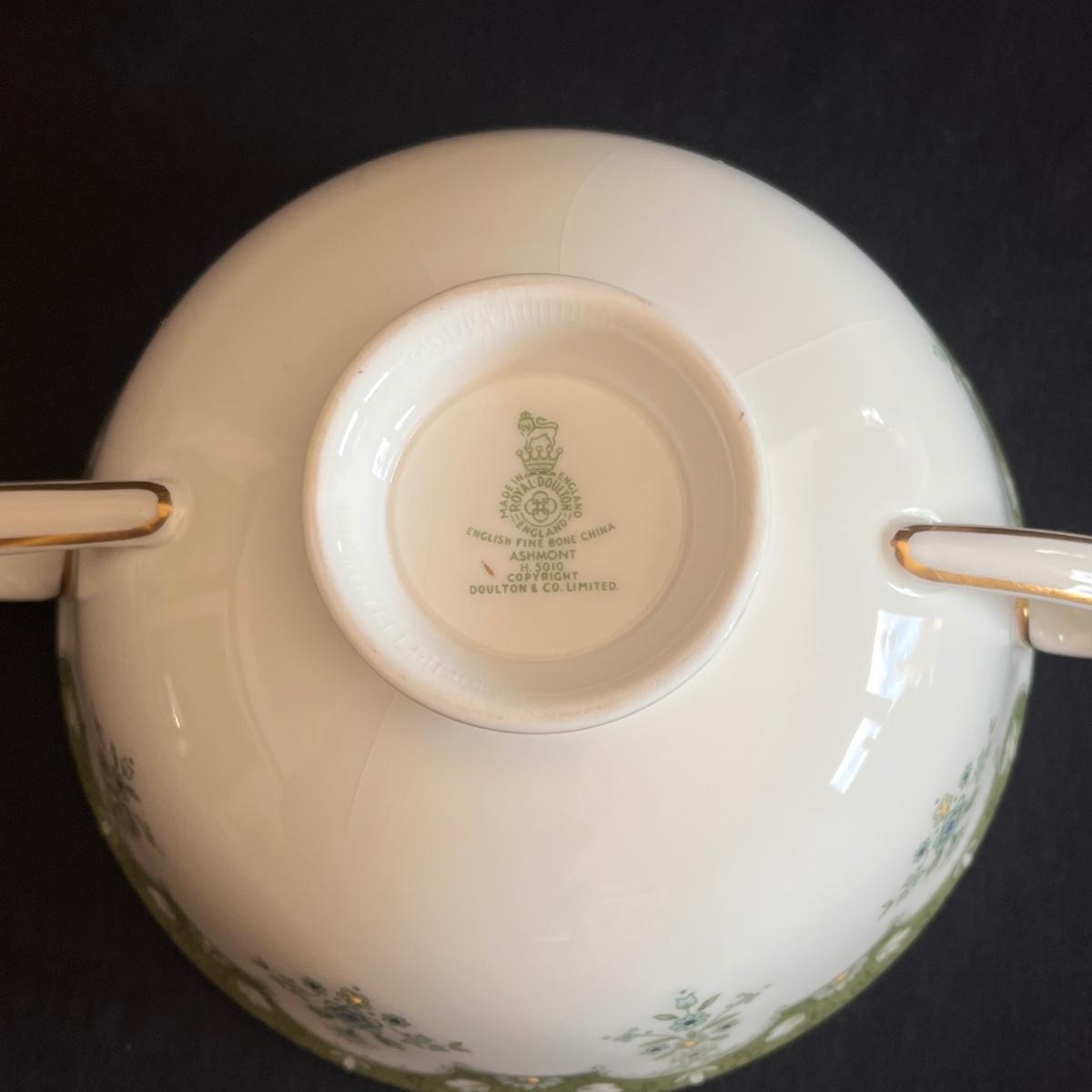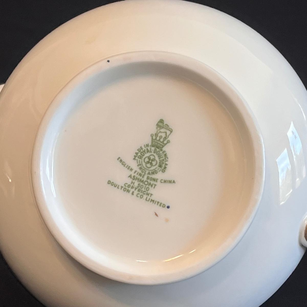 This Royal Doulton fine china set is a part of the “Ashmont” collection. It includes a six piece place setting for twelve (only 7 teacups and nine double handle bowls though) and several other servicing pieces (serving platter, creamer, sugar bowl, serving bowls of various sizes). See photos for examples of minor chips/blemishes only a few noted on a serving bowl, tea cup and double handle bowl. The largest piece is the serving plate which measures 13” x 16”H. Shipping available. Shipping available. Shipping can be costly. We suggest contacting our preferred local shipping provider, Postage Express, with dimensions and getting an estimate before bidding: (828) 670-5501 or email shipping@postageexpressnc.com