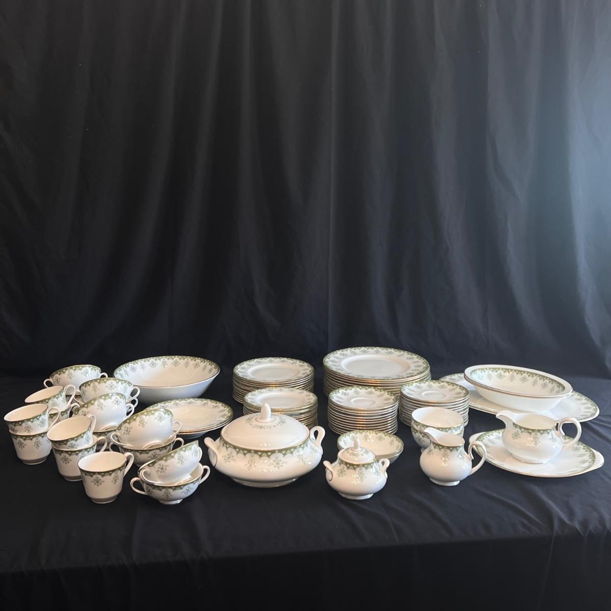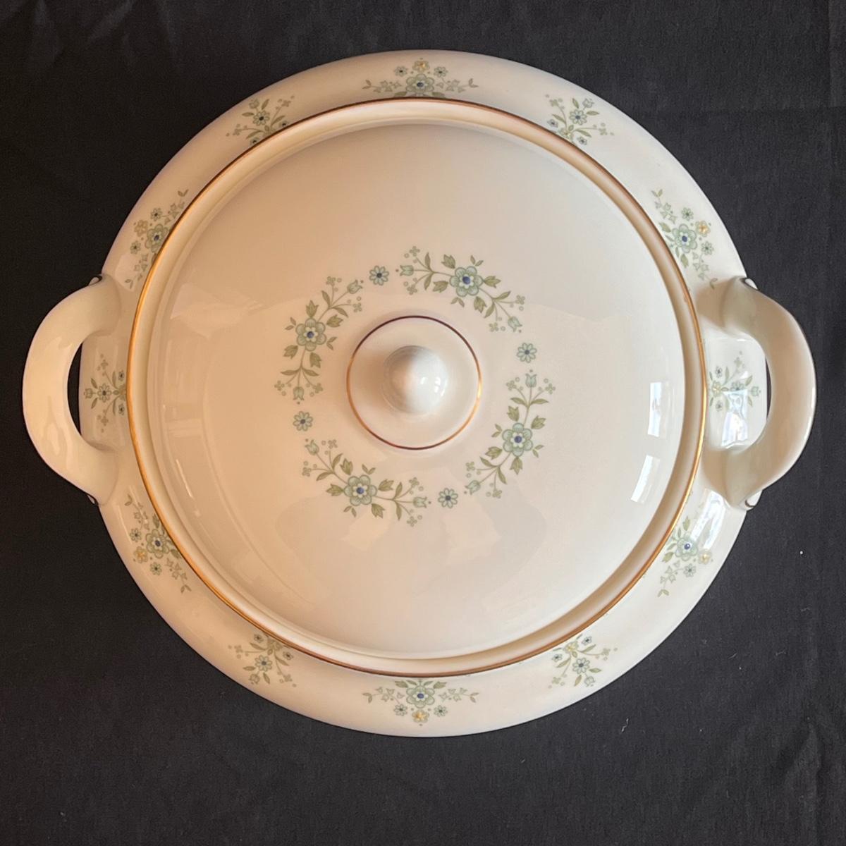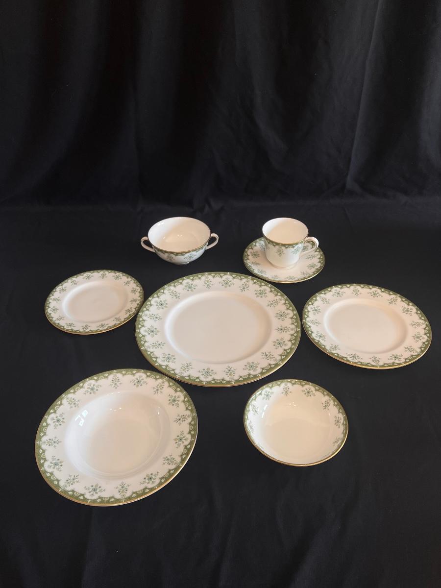 This Royal Doulton fine china set is a part of the “Ashmont” collection. It includes a six piece place setting for twelve (only 7 teacups and nine double handle bowls though) and several other servicing pieces (serving platter, creamer, sugar bowl, serving bowls of various sizes). See photos for examples of minor chips/blemishes only a few noted on a serving bowl, tea cup and double handle bowl. The largest piece is the serving plate which measures 13” x 16”H. Shipping available. Shipping available. Shipping can be costly. We suggest contacting our preferred local shipping provider, Postage Express, with dimensions and getting an estimate before bidding: (828) 670-5501 or email shipping@postageexpressnc.com
