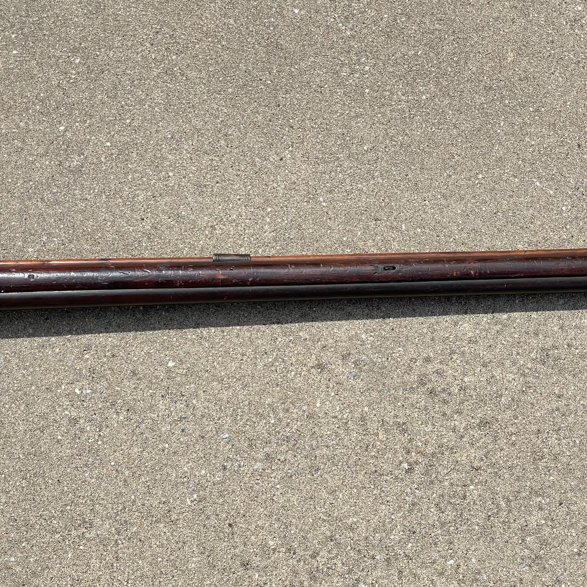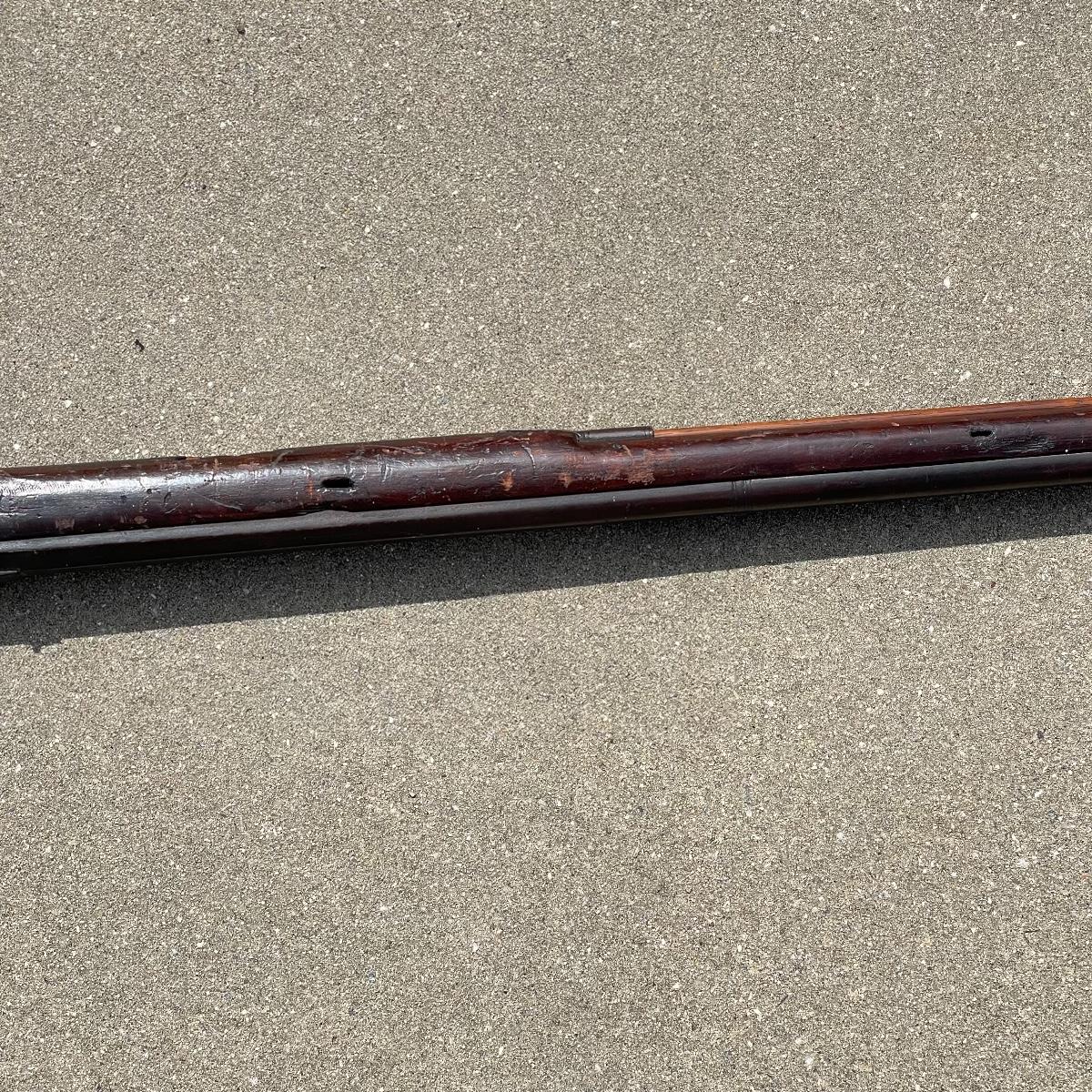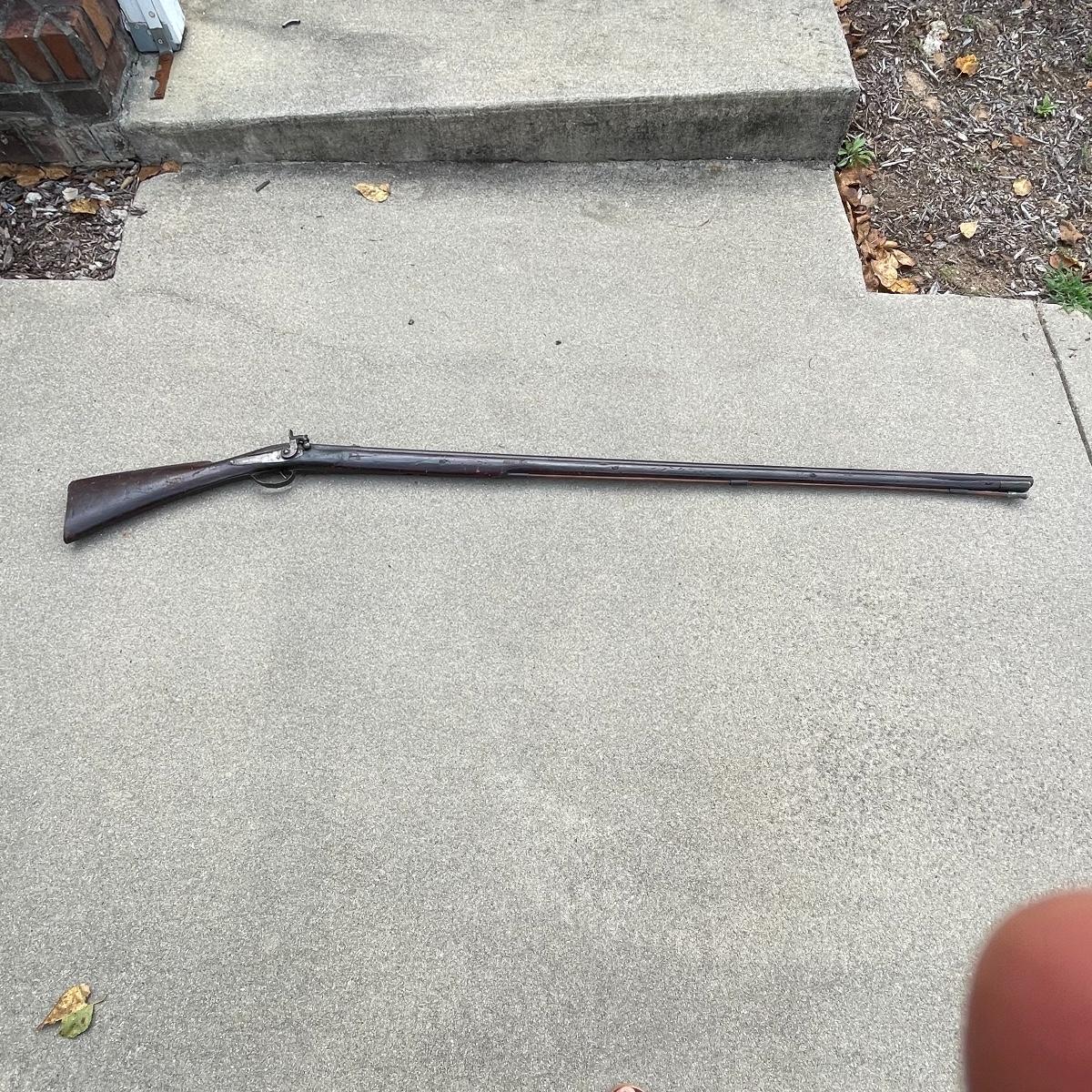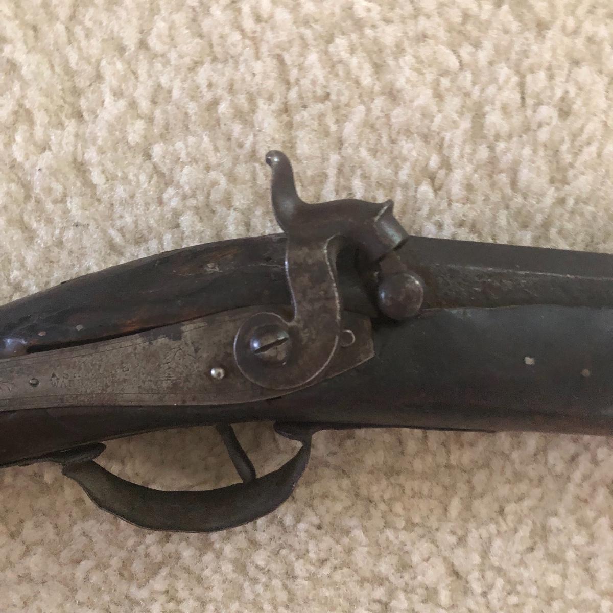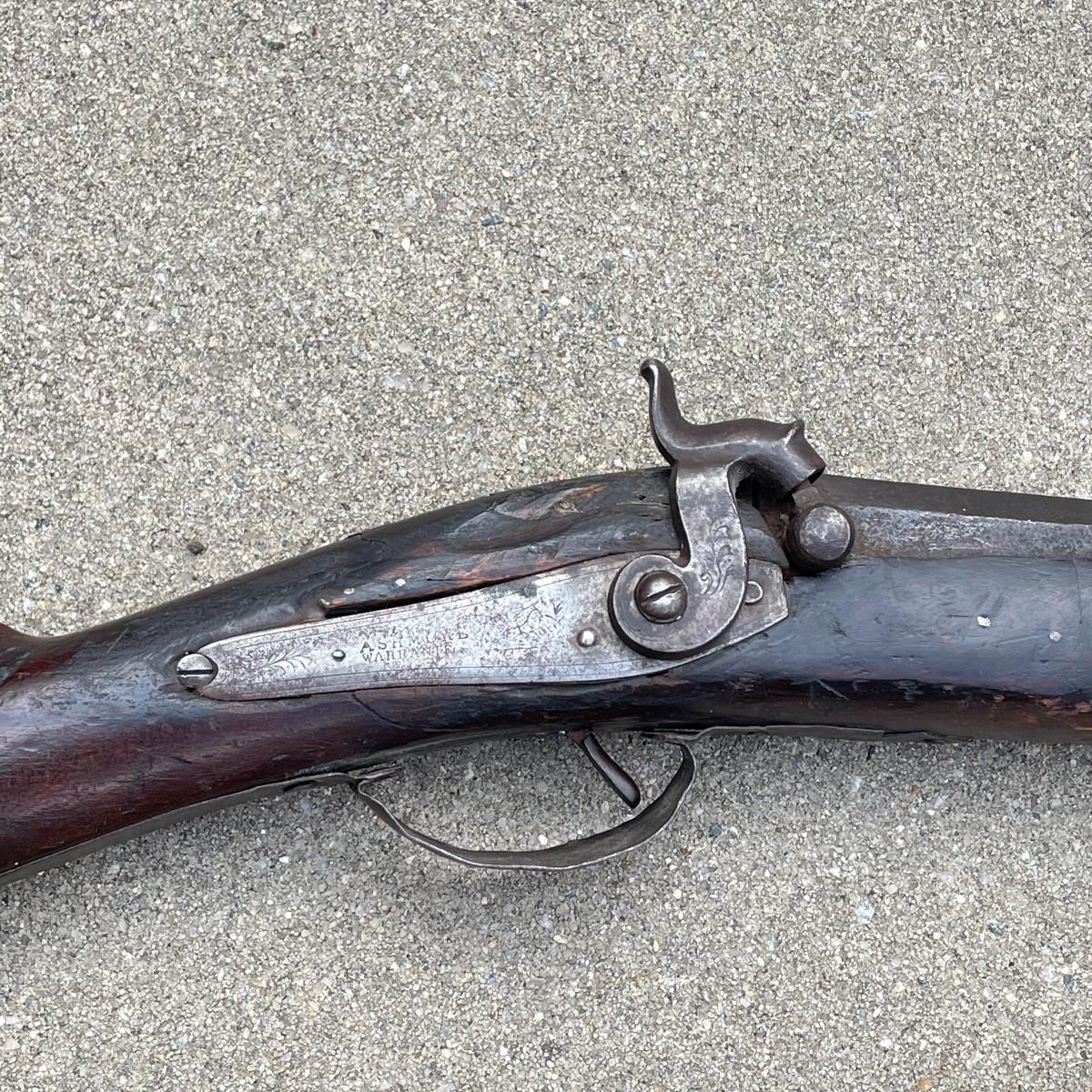This antique find has a 51” barrel and measures 68” overall. From the early 1800’s, this Ashmore percussion converted (possibly converted from flint to percussion) gun will make a great piece to hang on your wall.