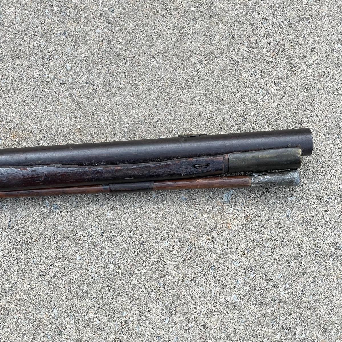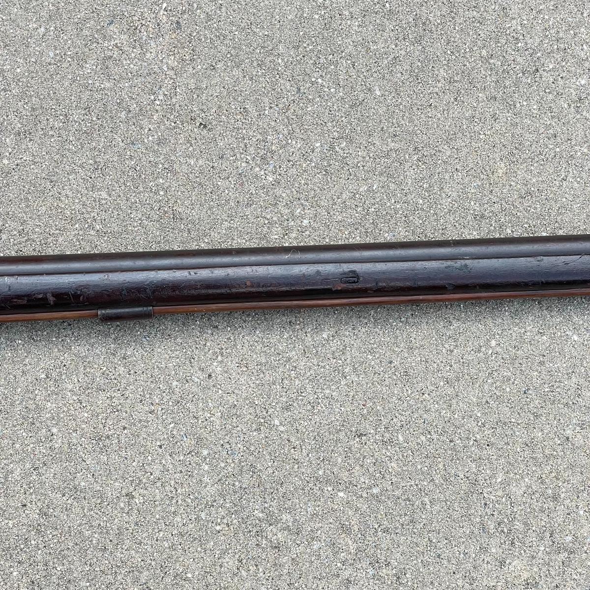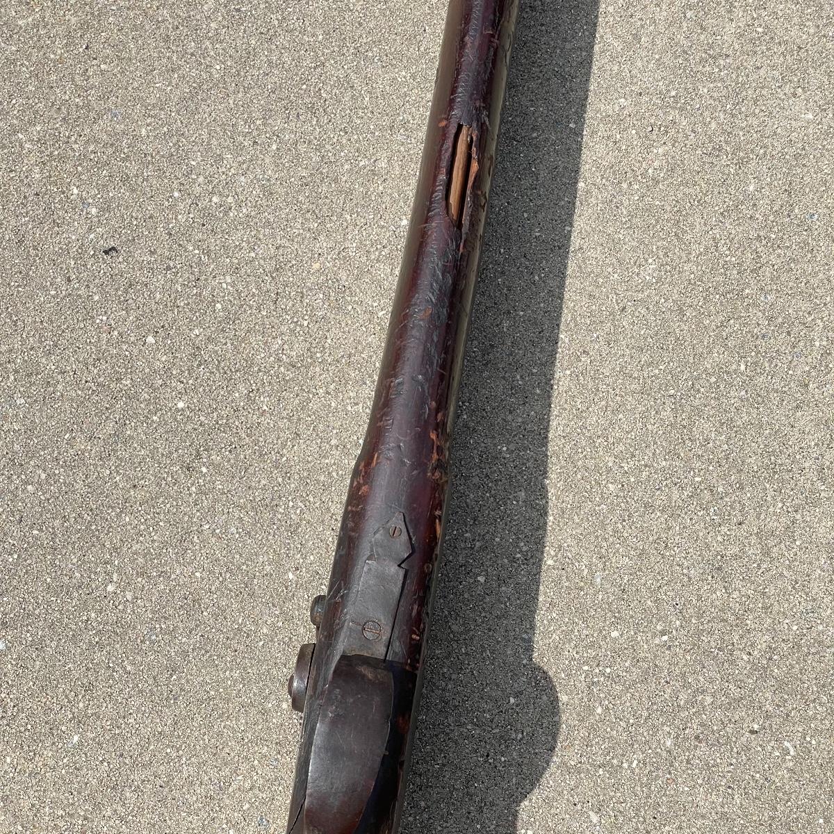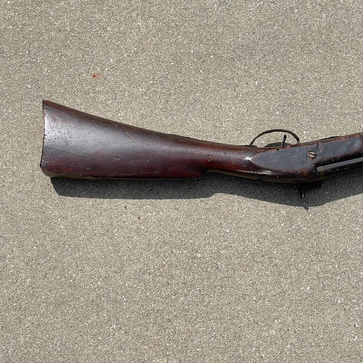 This antique find has a 51” barrel and measures 68” overall. From the early 1800’s, this Ashmore percussion converted (possibly converted from flint to percussion) gun will make a great piece to hang on your wall.