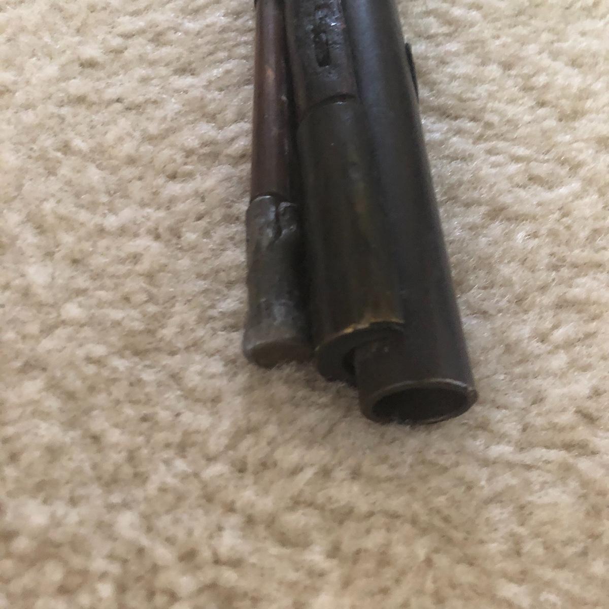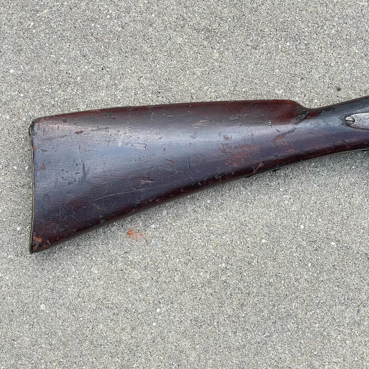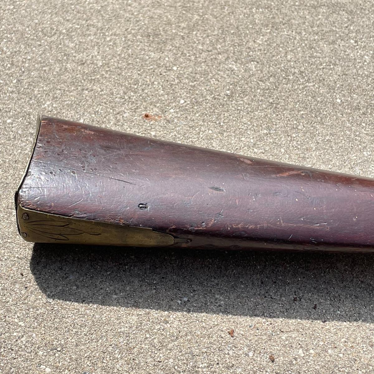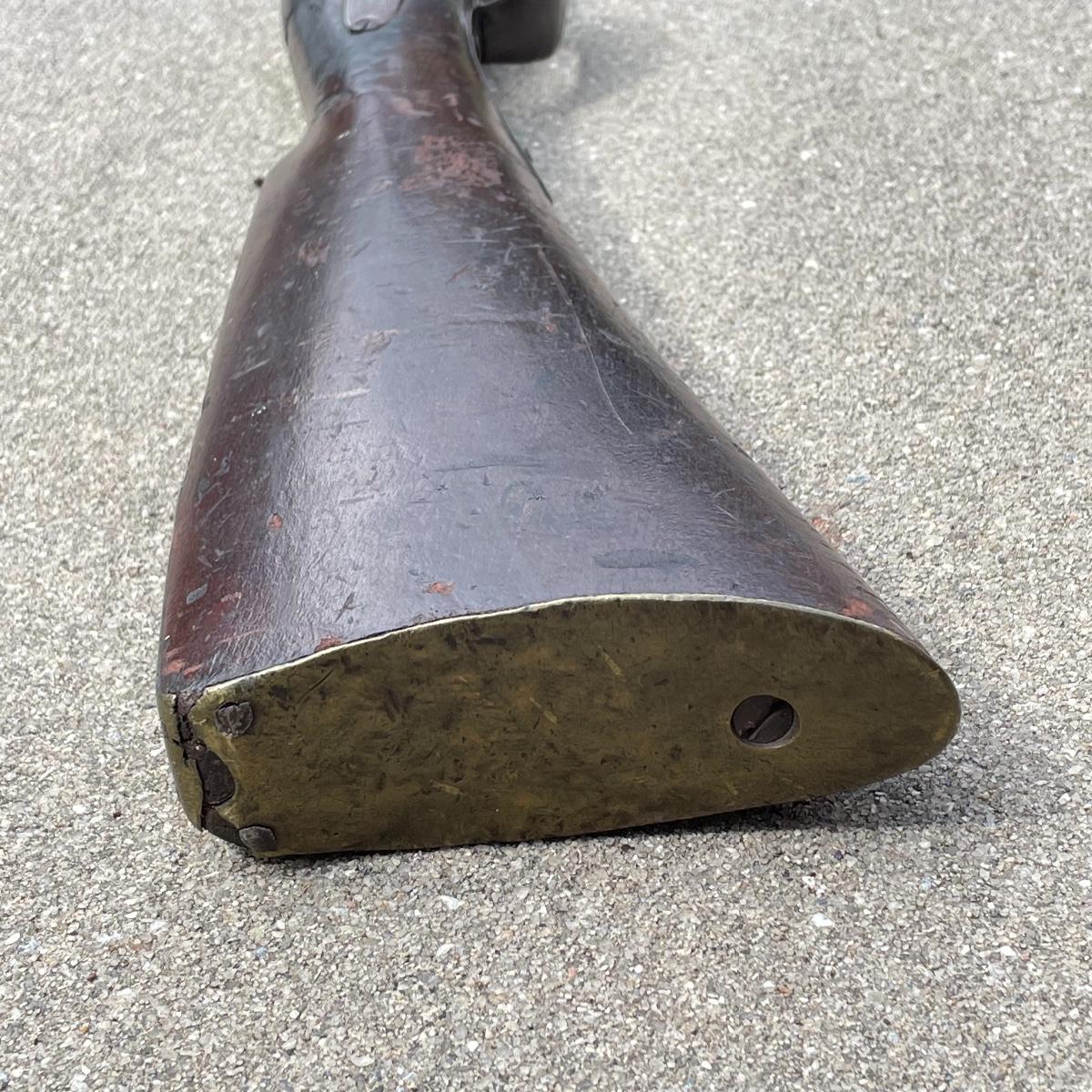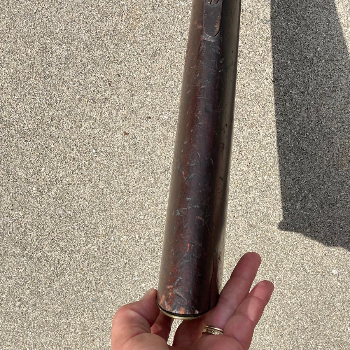 This antique find has a 51” barrel and measures 68” overall. From the early 1800’s, this Ashmore percussion converted (possibly converted from flint to percussion) gun will make a great piece to hang on your wall.