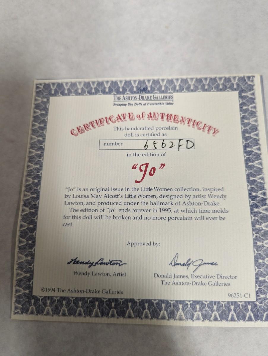 Ashton Drake Galleries Little Women Doll "Jo" With COA