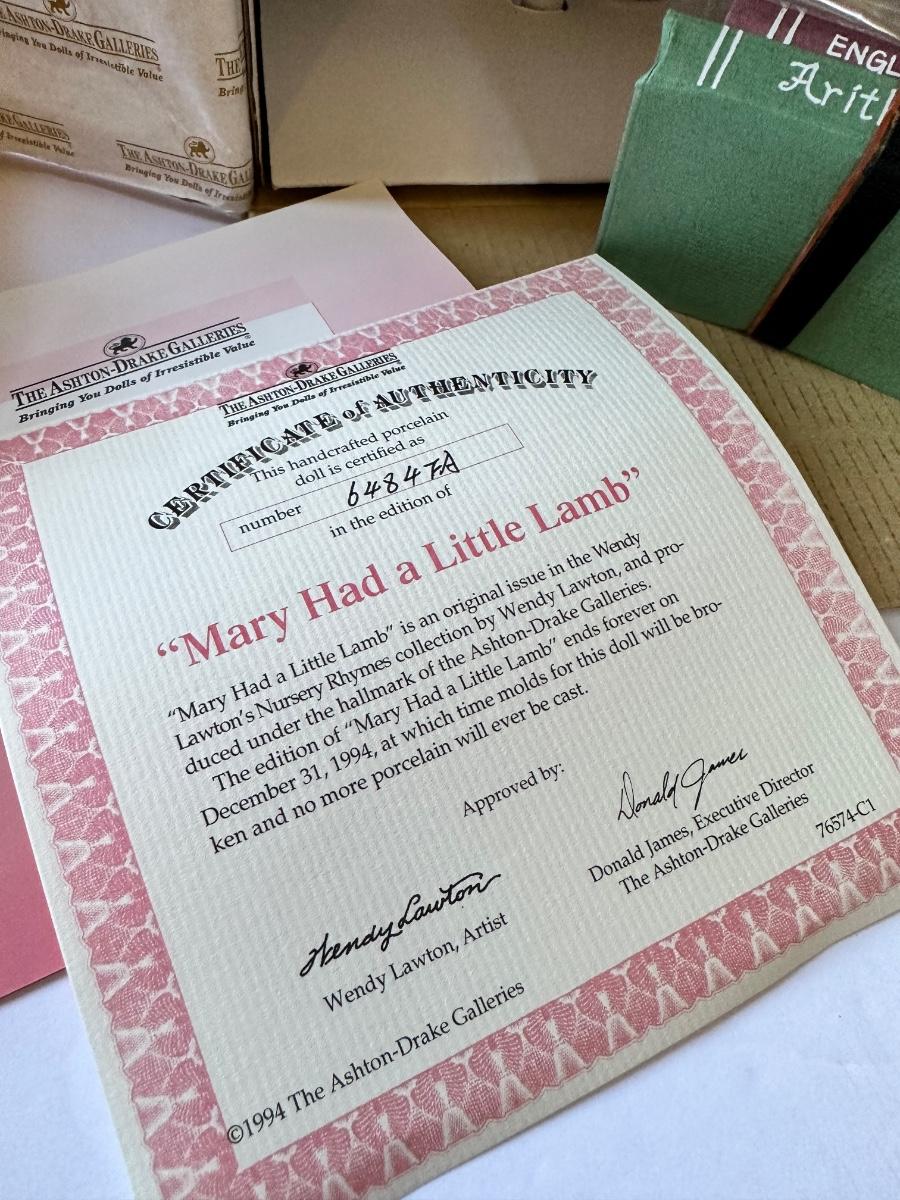 Ashton Drake Galleries "Mary Had a Little Lamb" Doll As Pictured
