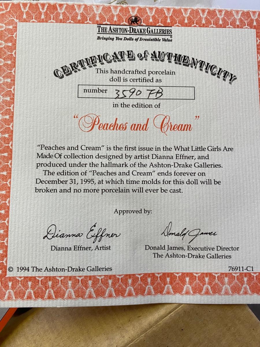 Ashton Drake Galleries Peaches-n-Cream Doll Artist Dianna Effner