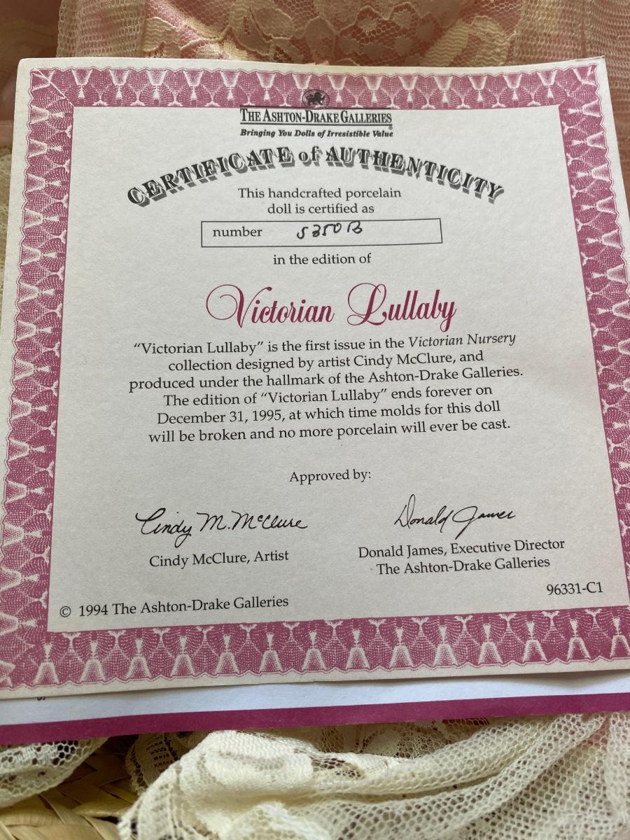 Ashton Drake Galleries Victorian Lullaby Doll As Pictured
