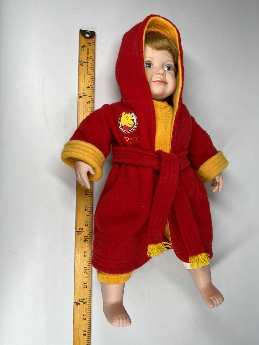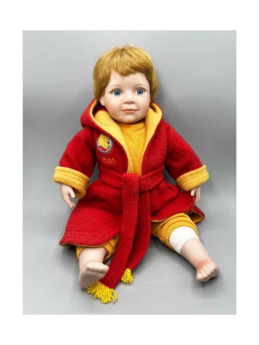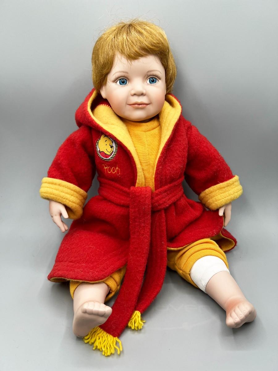Ashton Drake Gallery Little Boy Porcelain Doll Winnie the Pooh Red Robe. Signed and numbered on the back of neck. Good condition, has been displayed and a couple small scuffs. No box or COA.