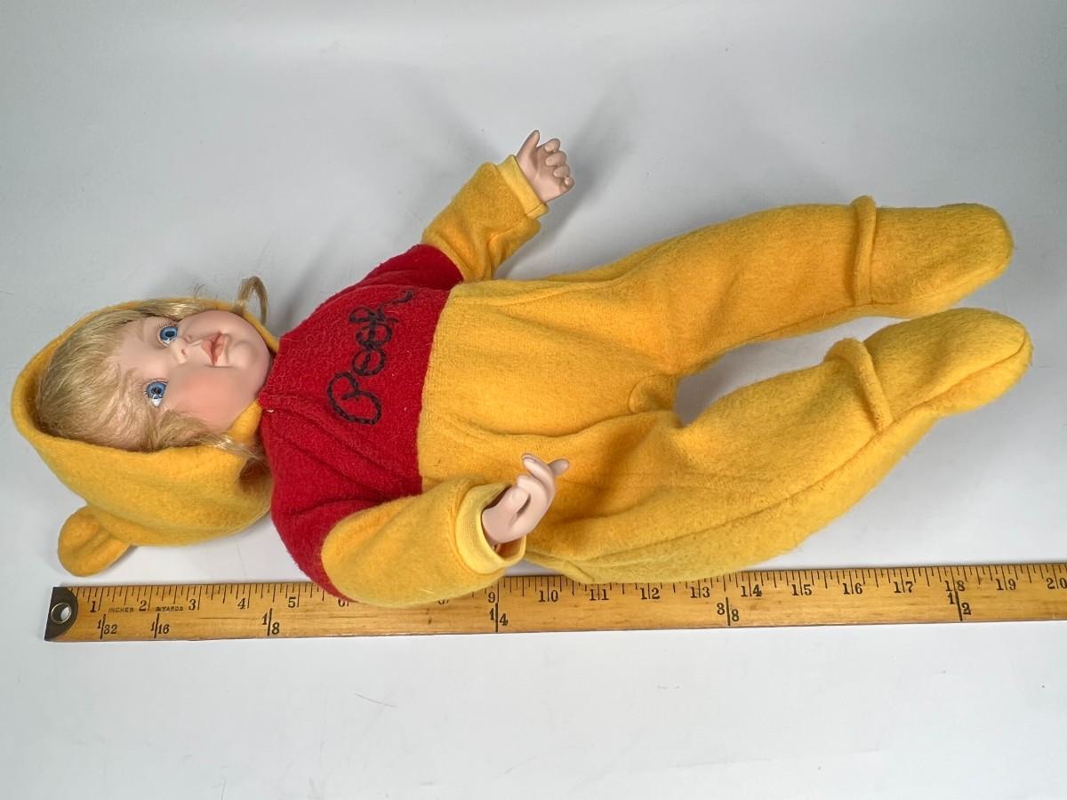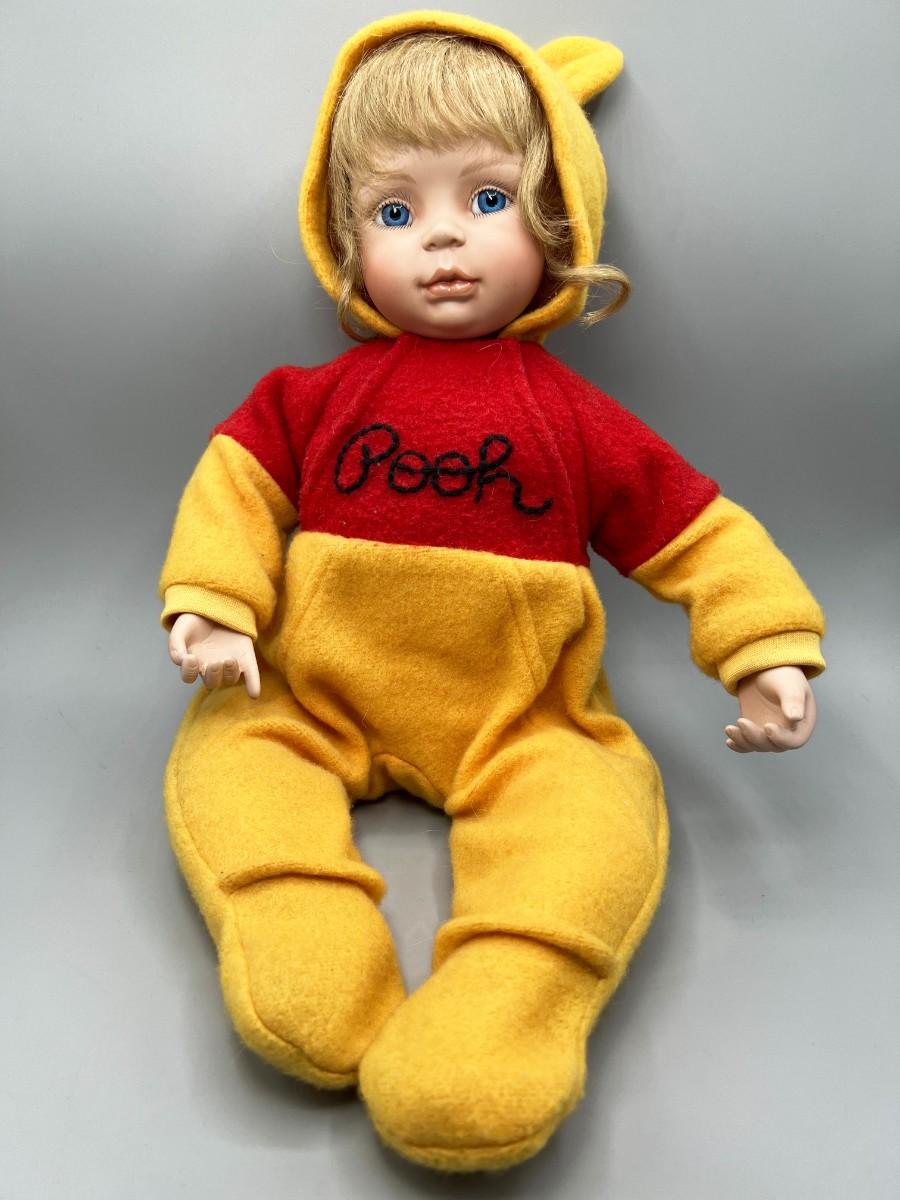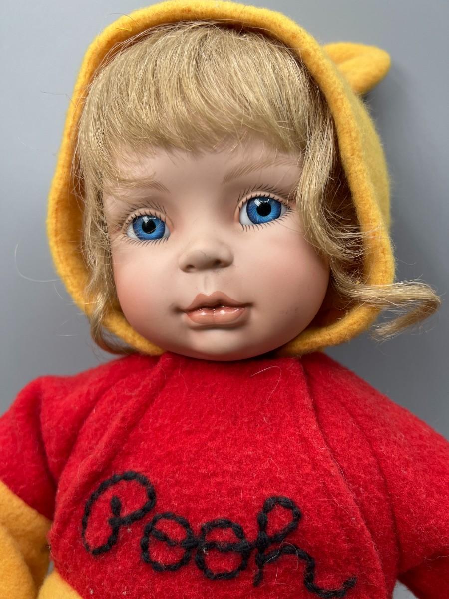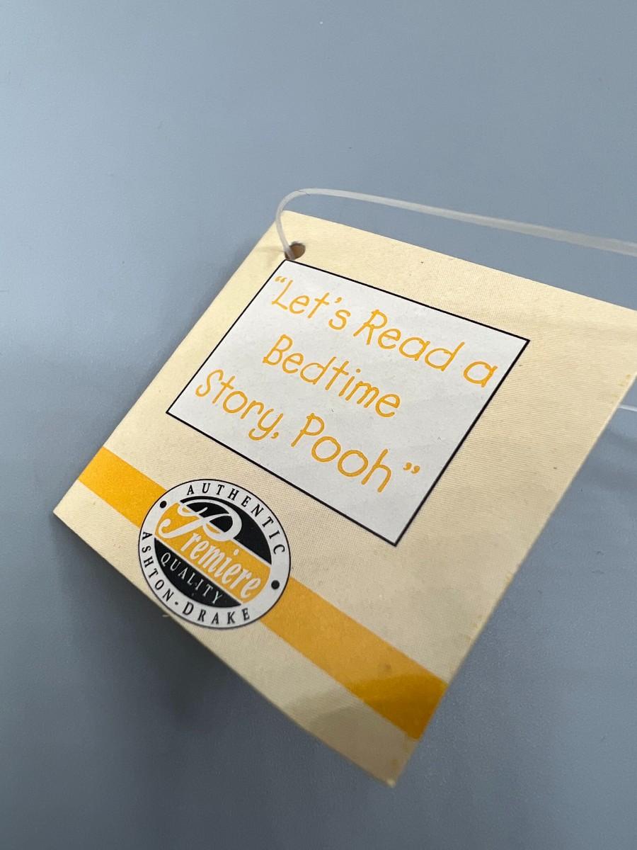 Ashton Drake Let's Read a Bedtime Story, Pooh Porcelain Collector Doll. Has original hang tag. Neck is signed and numbered. Good condition, may be dusty from display and storage.