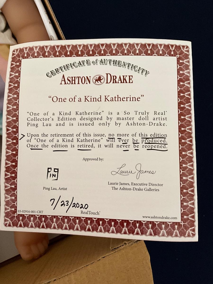 Ashton-Drake Galleries one of a kind "Katherine" Doll