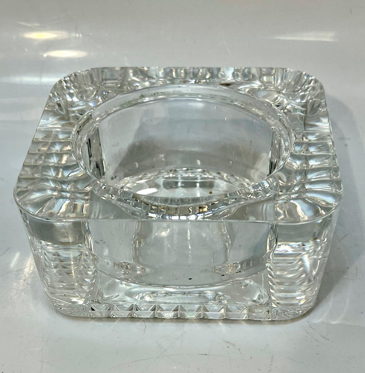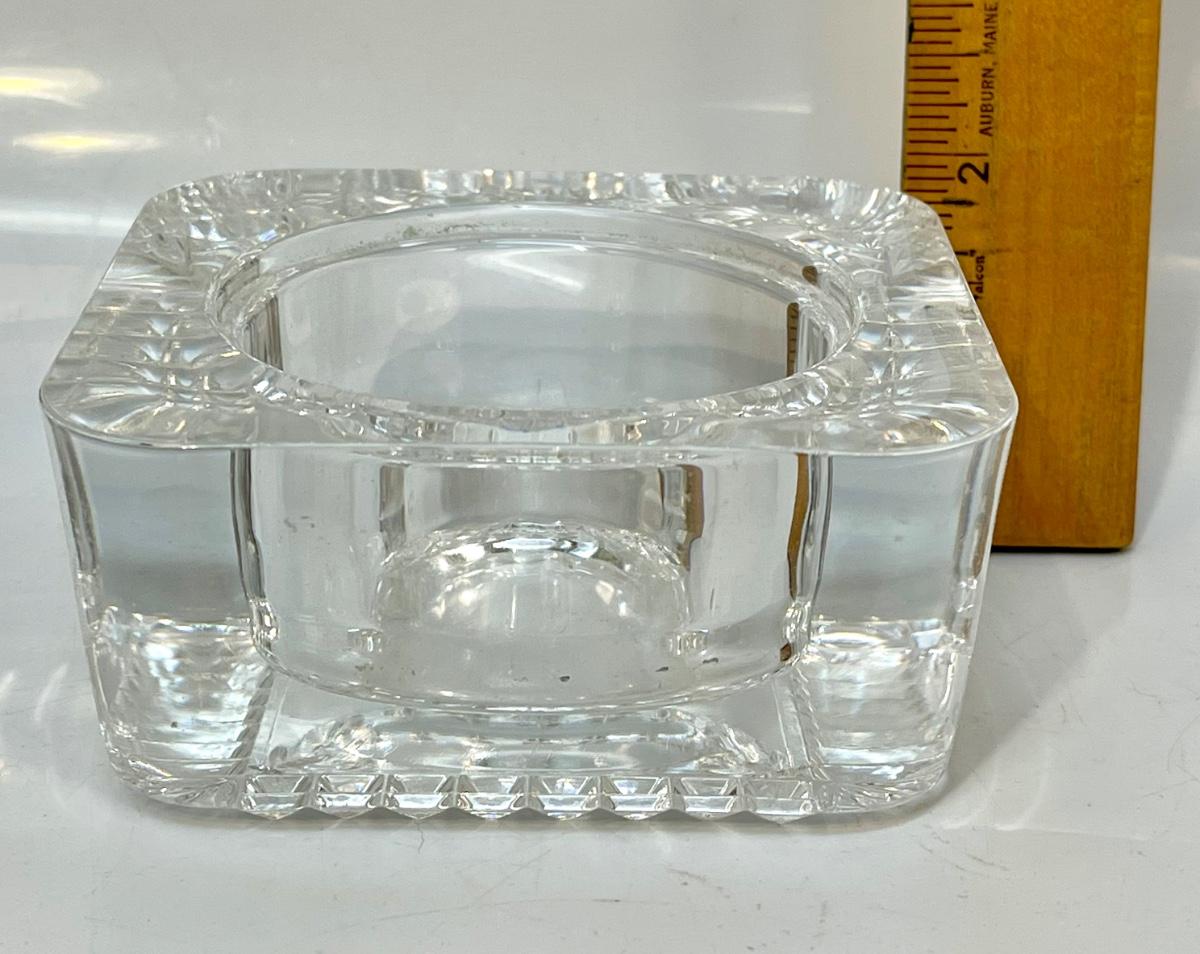 Vintage Thick Crystal Glass Ashtray Candle Holder France. Good condition. Heavy thick glass under 5" size.