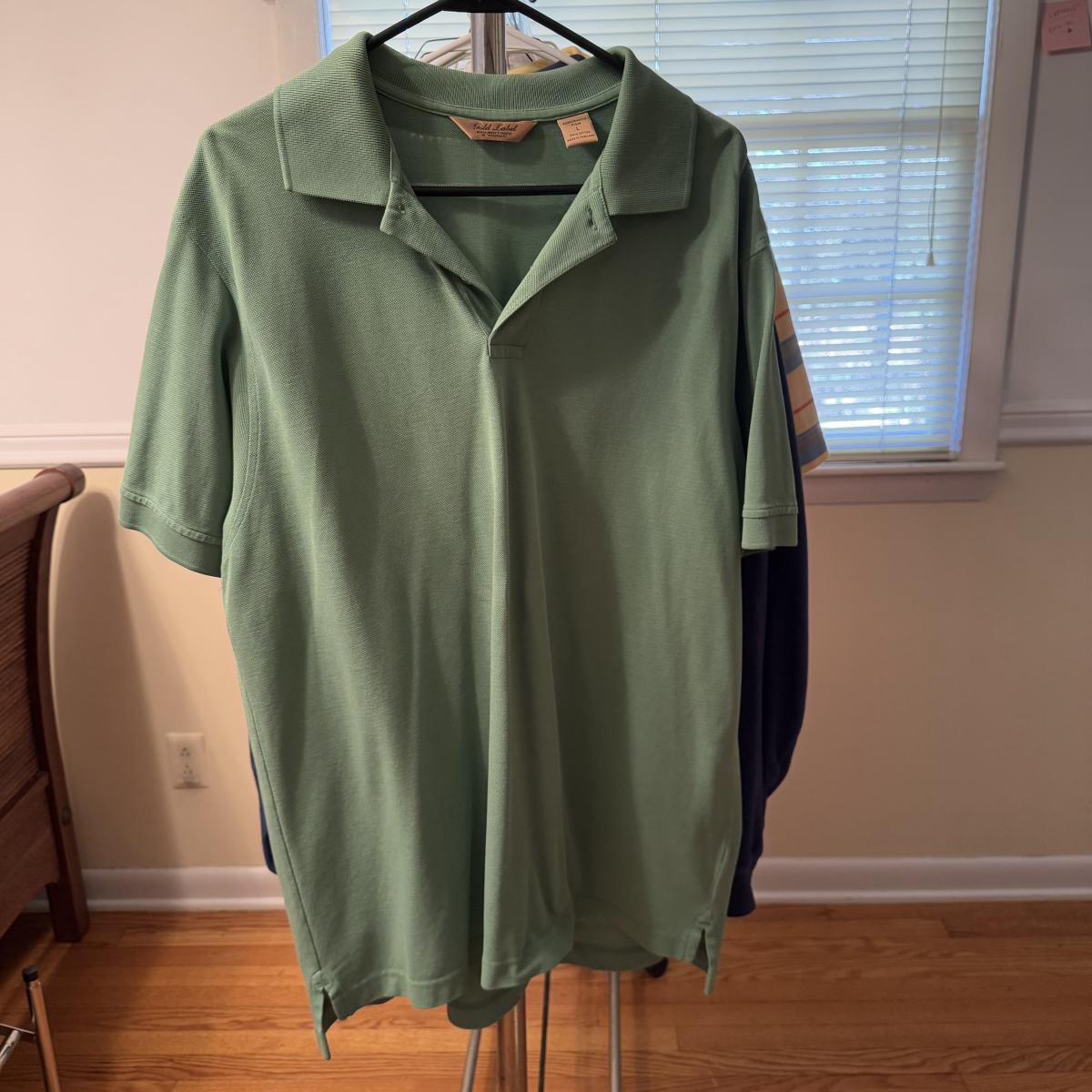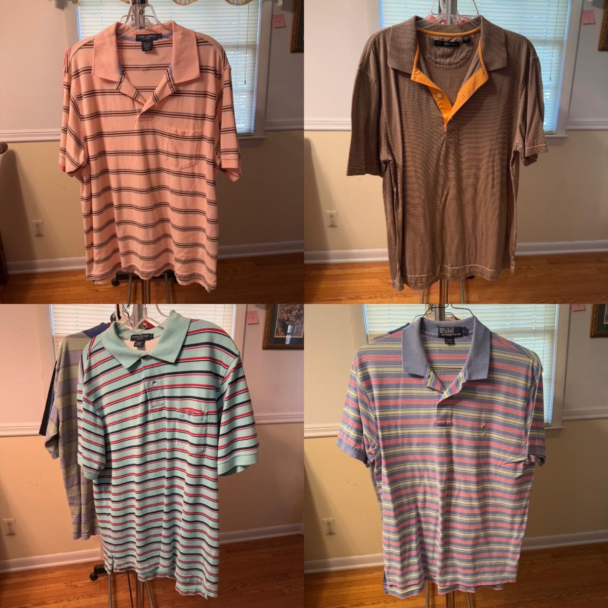 Lot includes sixteen men’s polo shirts, (with one being a long sleeve microfiber quarter zip) in sizes medium and large. You’ll find the following brands: Ashworth, Daniel Cremieux, James Tattersall, Greg Norman, Lyle & Scott, and Polo by Ralph Lauren. Shipping available.
