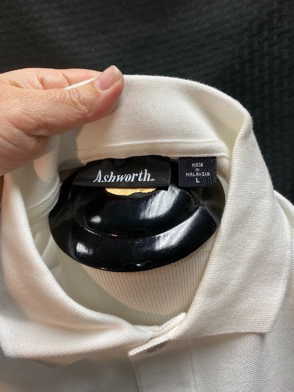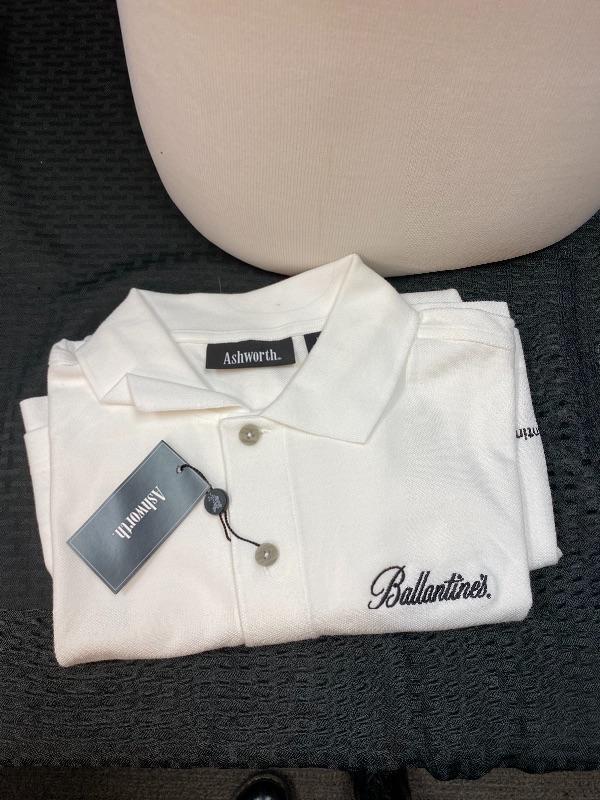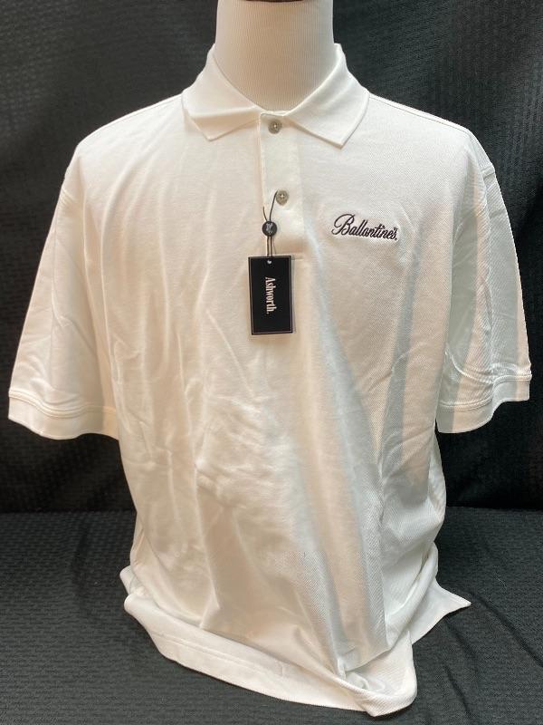 New with Tag. Ashworth white promo polo shirt. Embroidered for Ballantine's. Size Large. Has original tag attached.