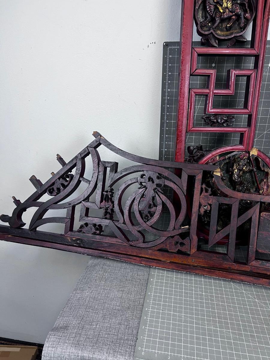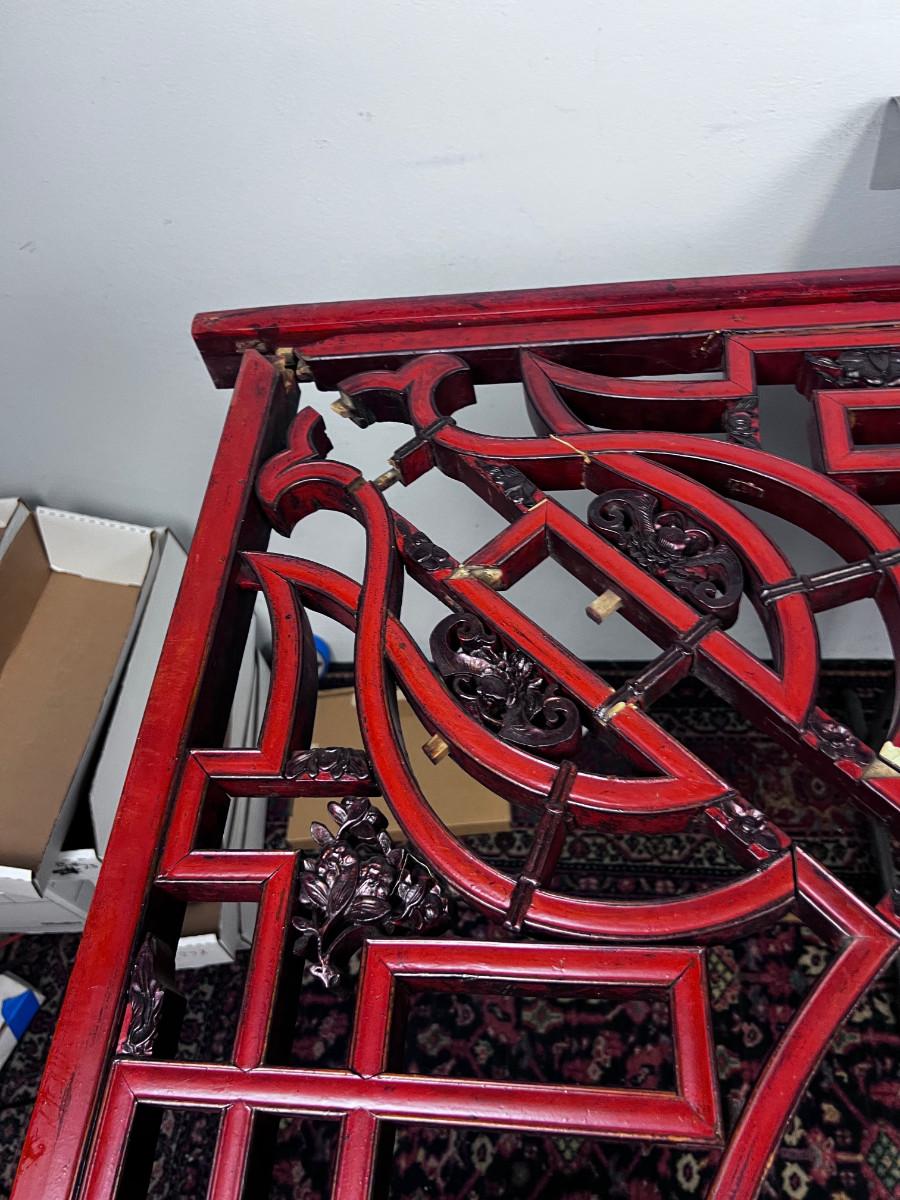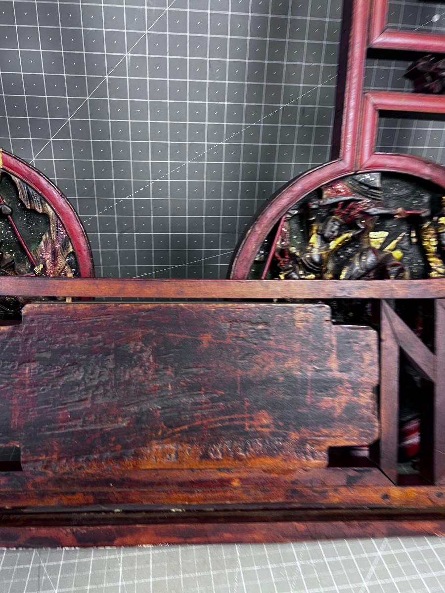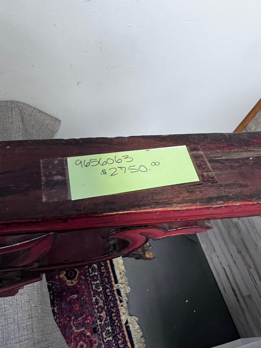 Does have some Minor Damage, but overall its usable. We will facilitate Shipping. Overall Length is 85" Height is 55" Could be Very old or NOT!!! No date. But it does have wood Pegs. Had a price tag of $2,700. We have no idea from where or when this item was acquired?? It is quite Nice!