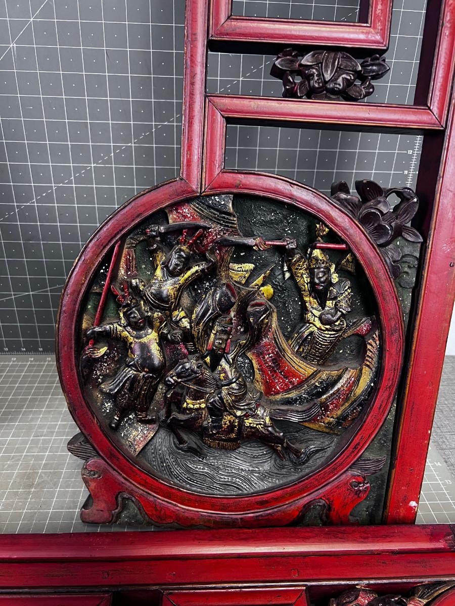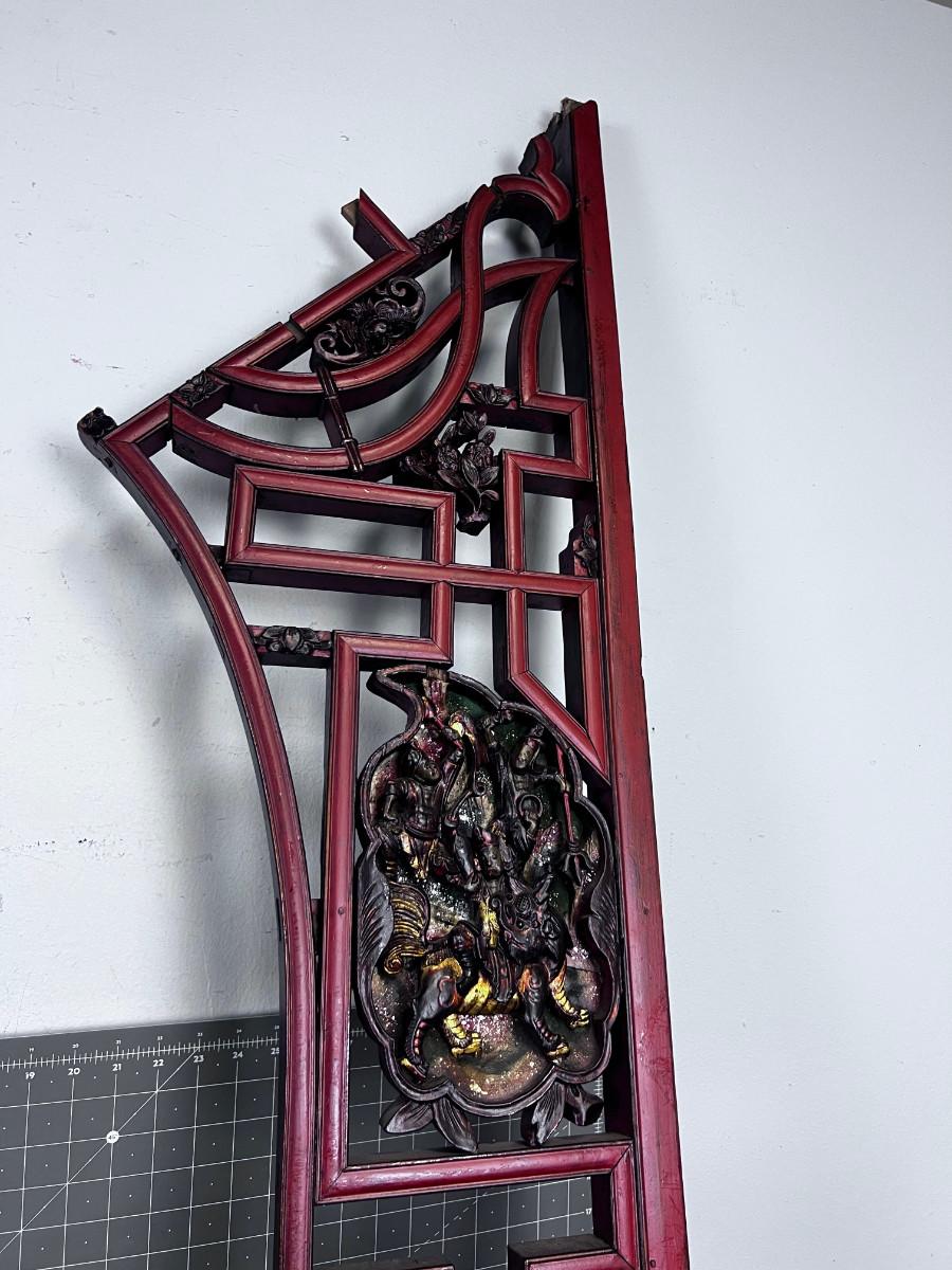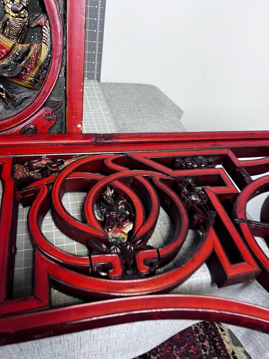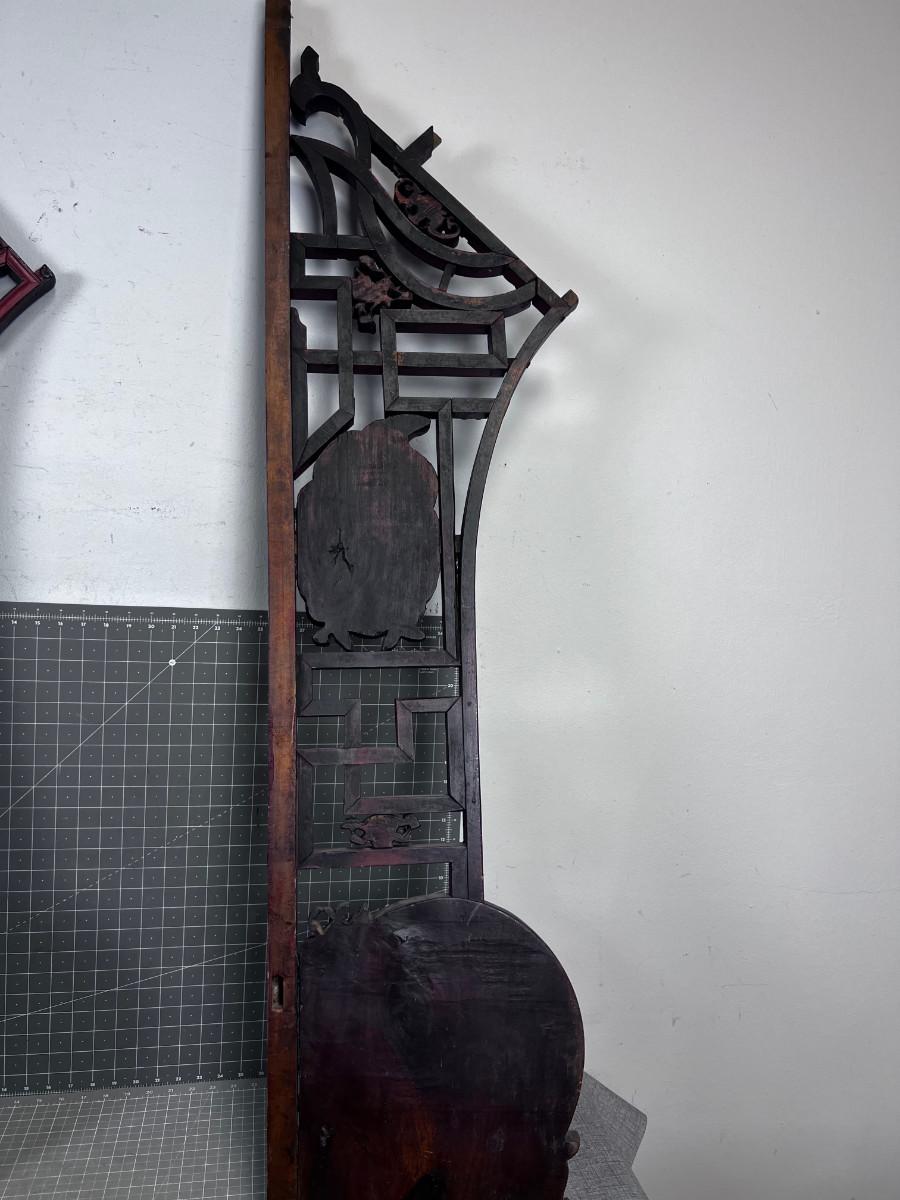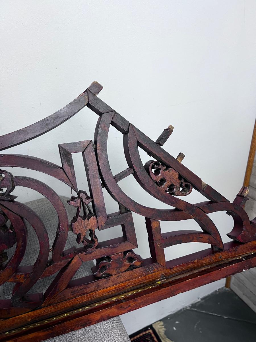 Does have some Minor Damage, but overall its usable. We will facilitate Shipping. Overall Length is 85" Height is 55" Could be Very old or NOT!!! No date. But it does have wood Pegs. Had a price tag of $2,700. We have no idea from where or when this item was acquired?? It is quite Nice!