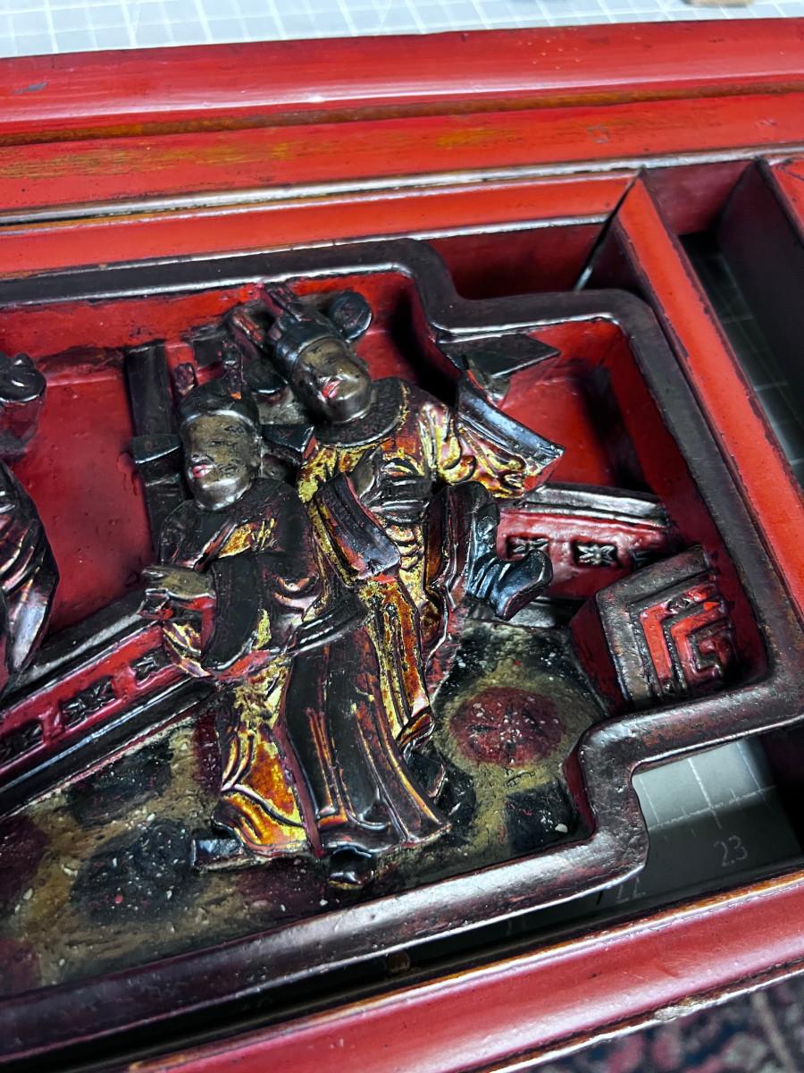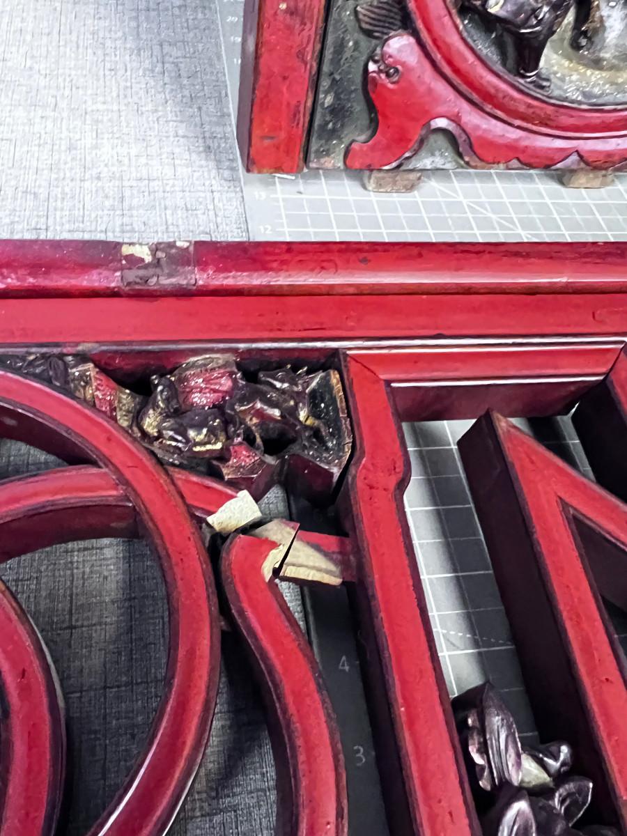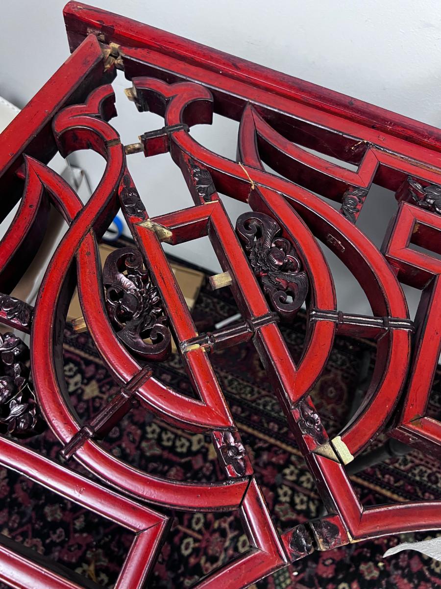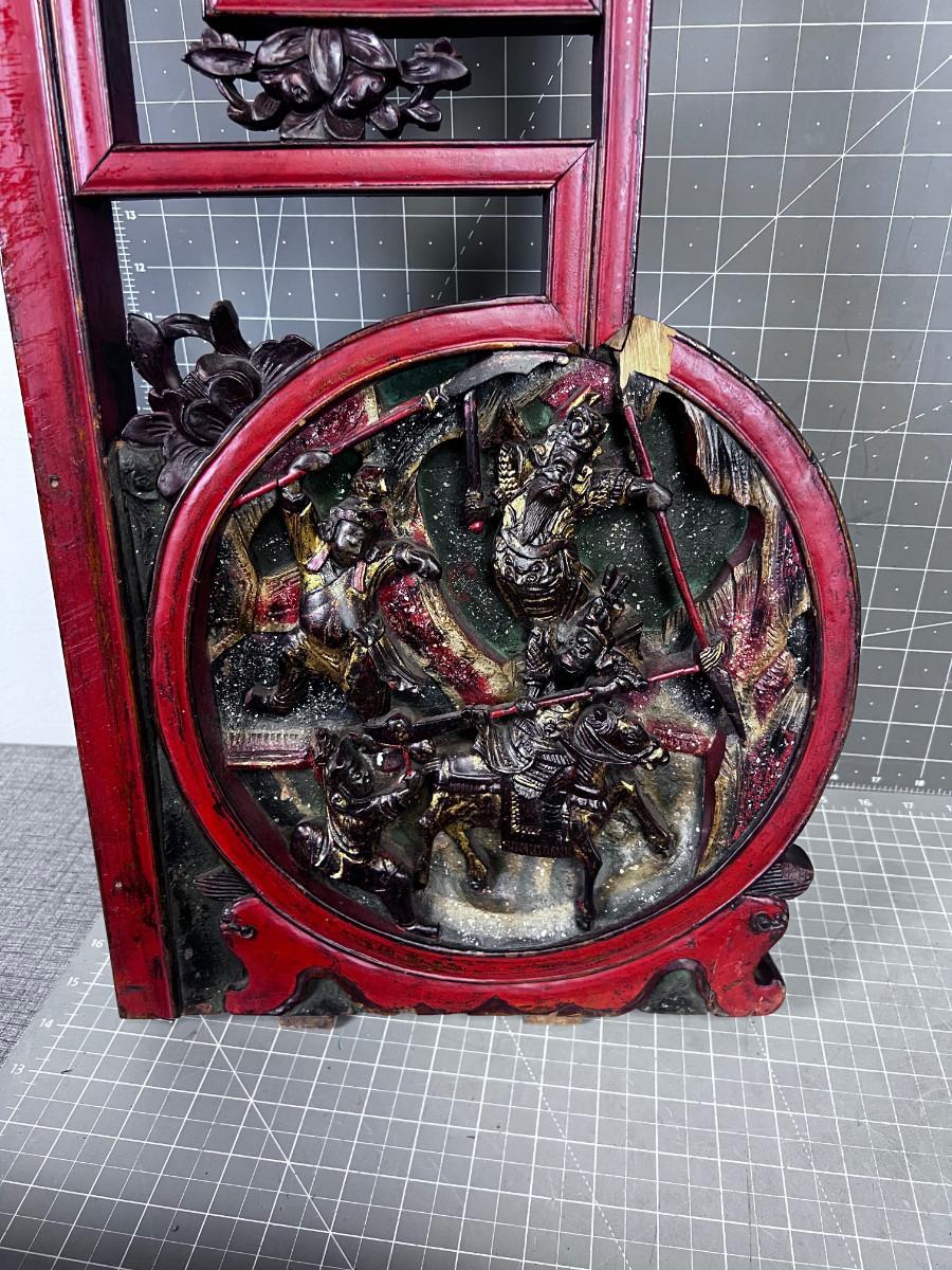 Does have some Minor Damage, but overall its usable. We will facilitate Shipping. Overall Length is 85" Height is 55" Could be Very old or NOT!!! No date. But it does have wood Pegs. Had a price tag of $2,700. We have no idea from where or when this item was acquired?? It is quite Nice!
