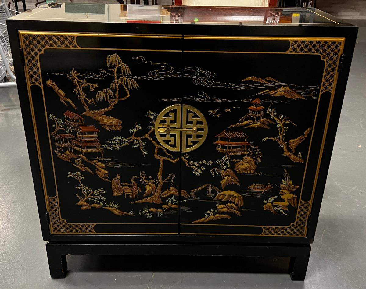 Asian Black Lacquer Cabinet by Drexel Heritage