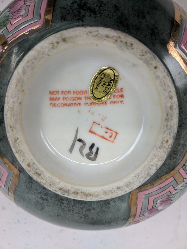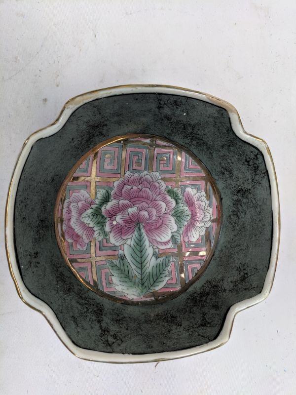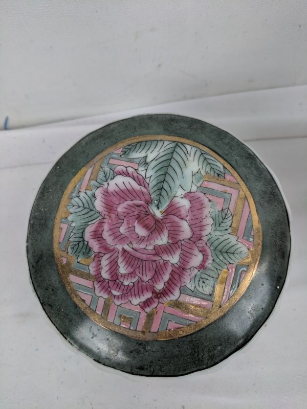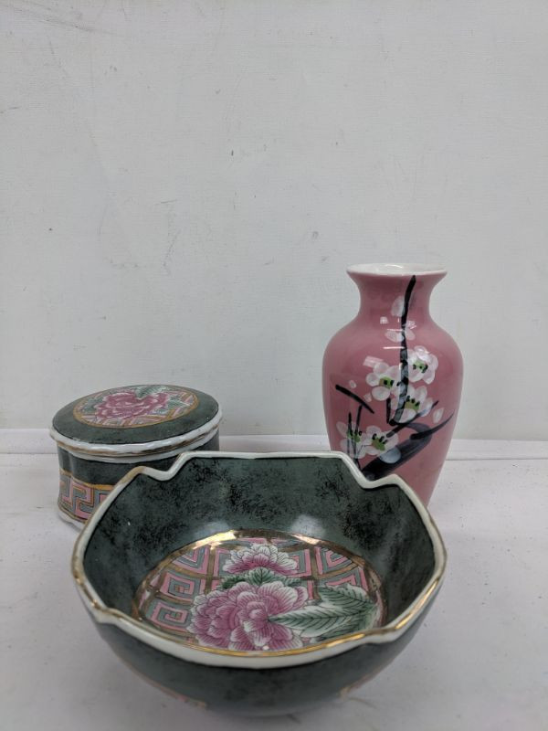 (Asian?) Bowl, Trinket Box & Small Pink Vase