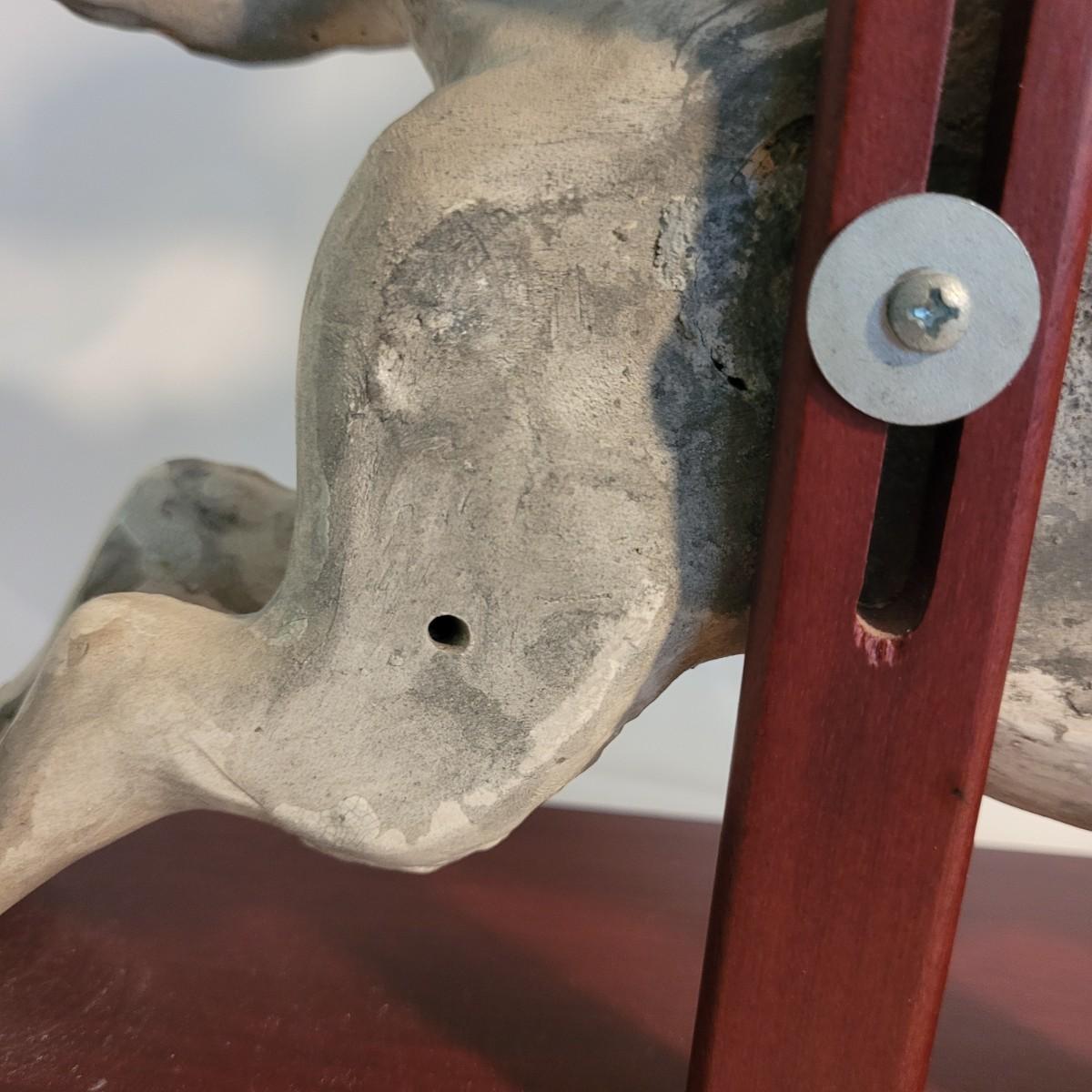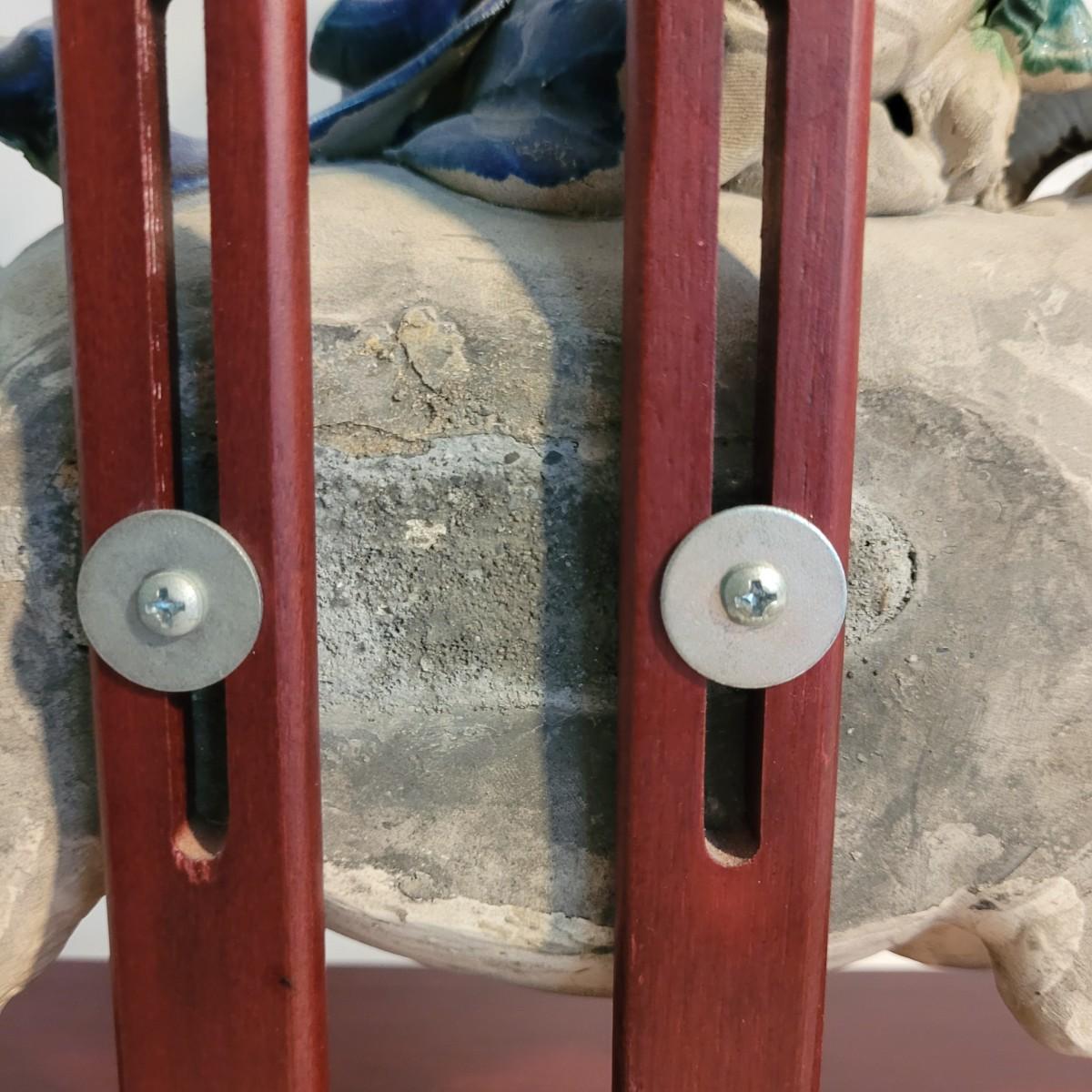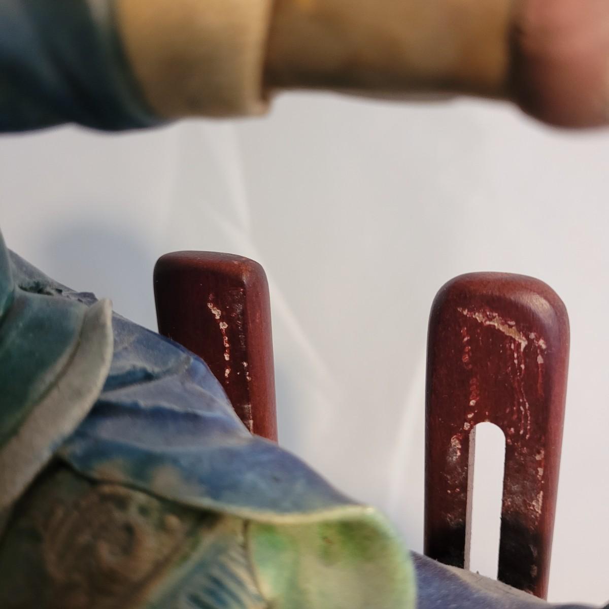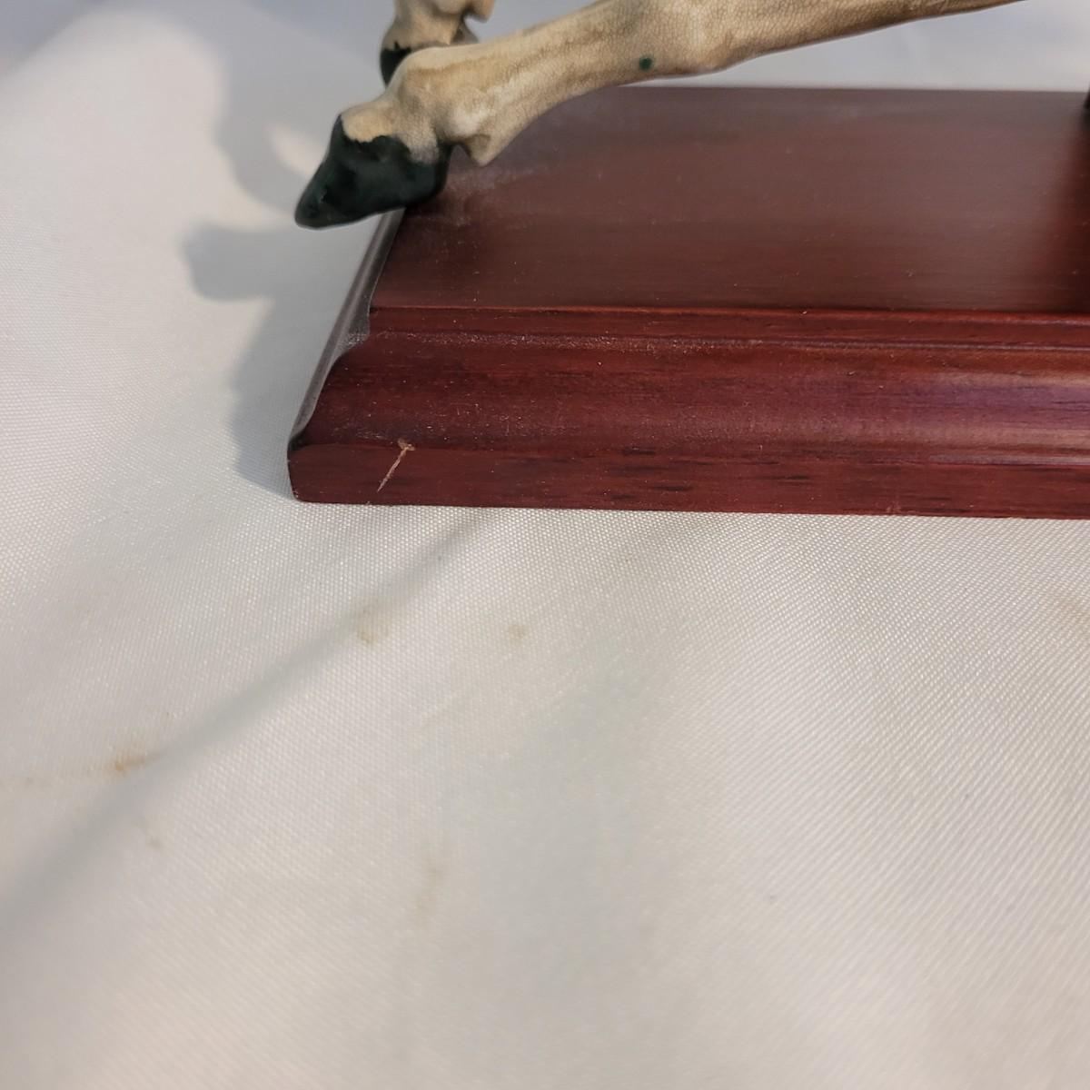 Asian ceramic Sancai on ram in the style of Chinese roof tile placed on temple roof top ridges. Statue in excellent condition, wooden base has small scratches in front and on back posts. Measures approximately 13.5"L x5"W x13"H. Shipping available.