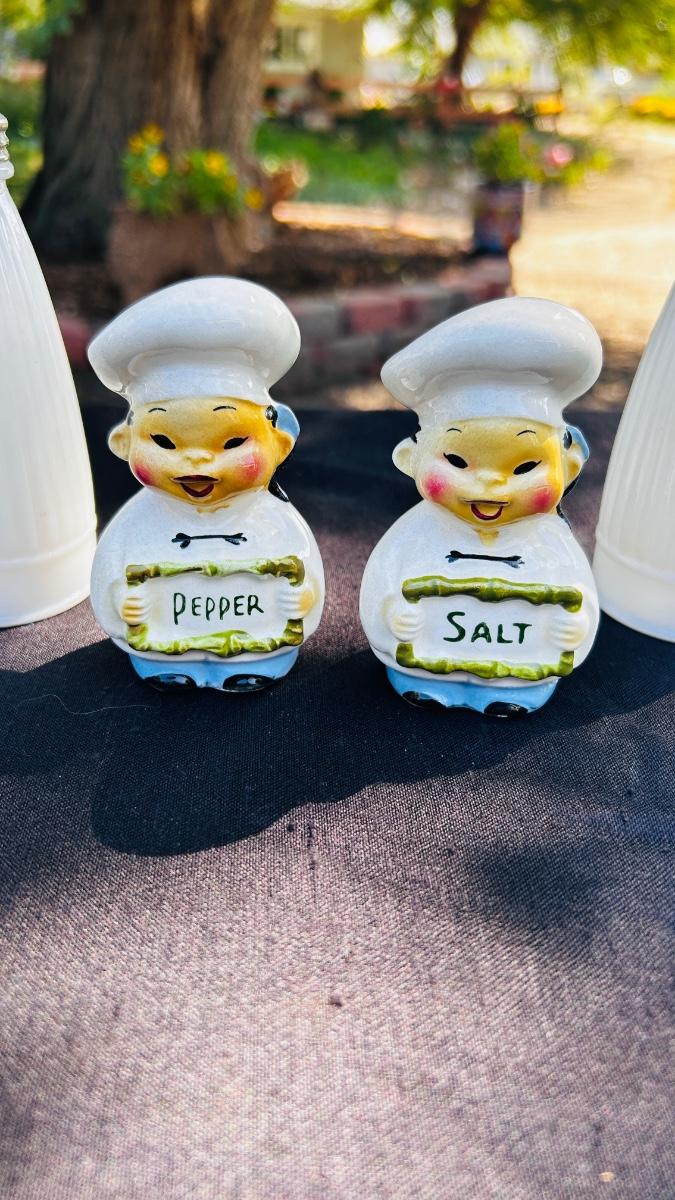 HAND PAINTED ASIAN CHEFS, MILK GLASS AND MORE SALT AND PEPPER SHAKERS