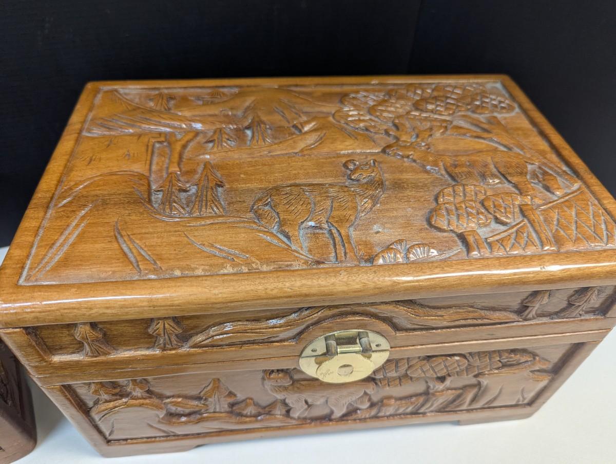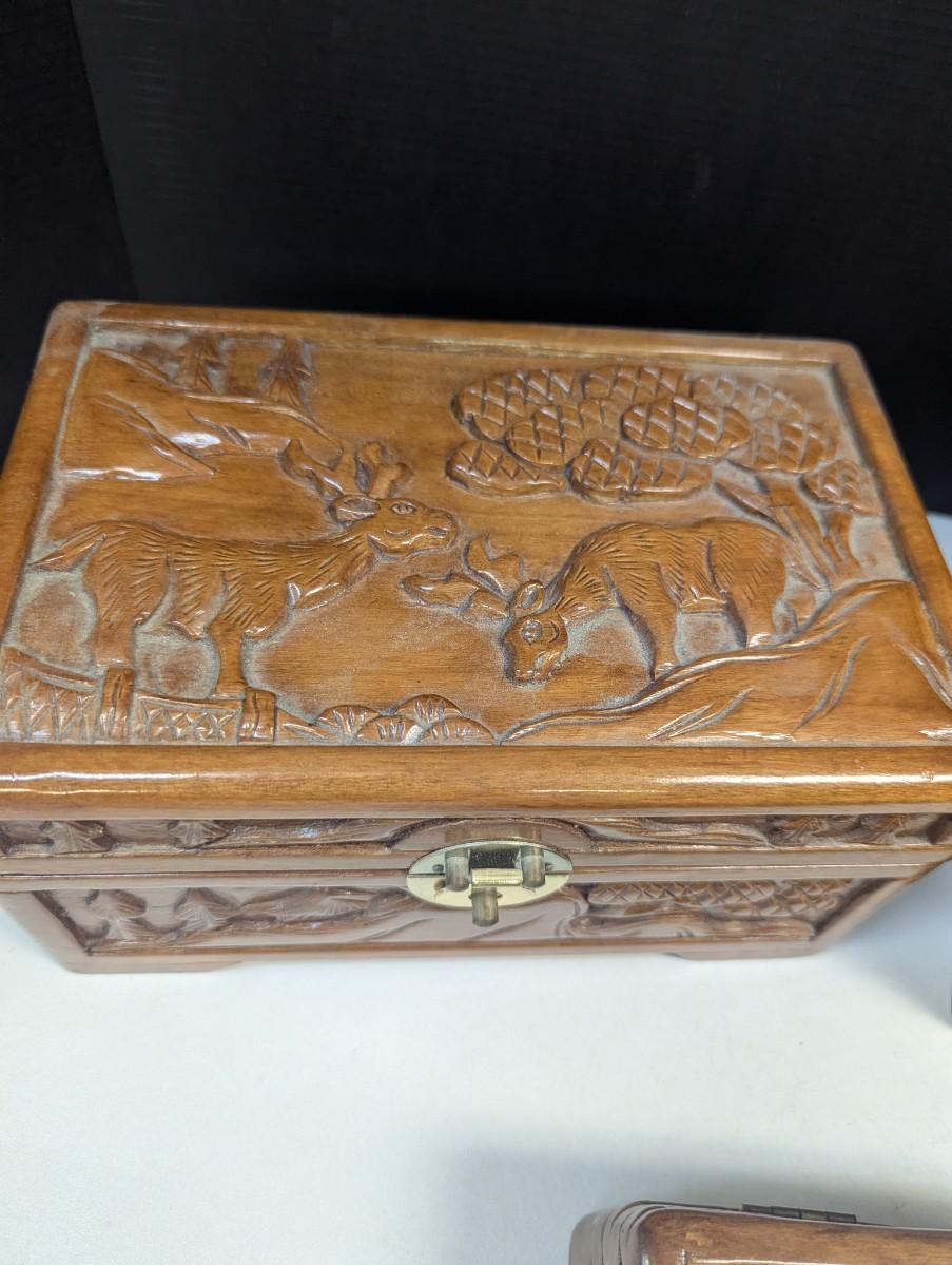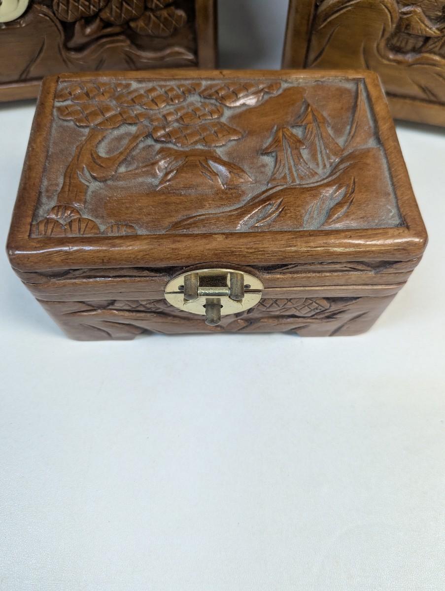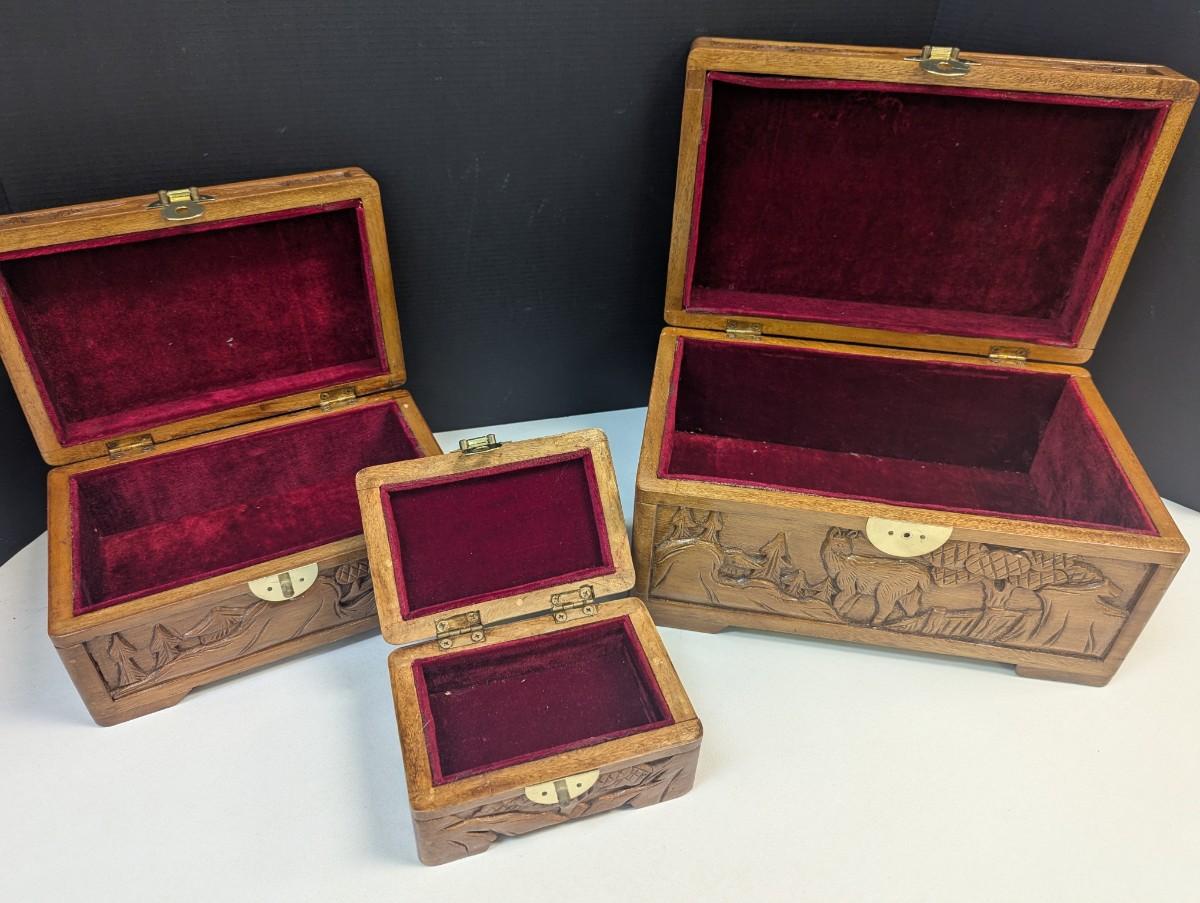 Asian Chinese Hand Carved Nesting Jewelry Chests