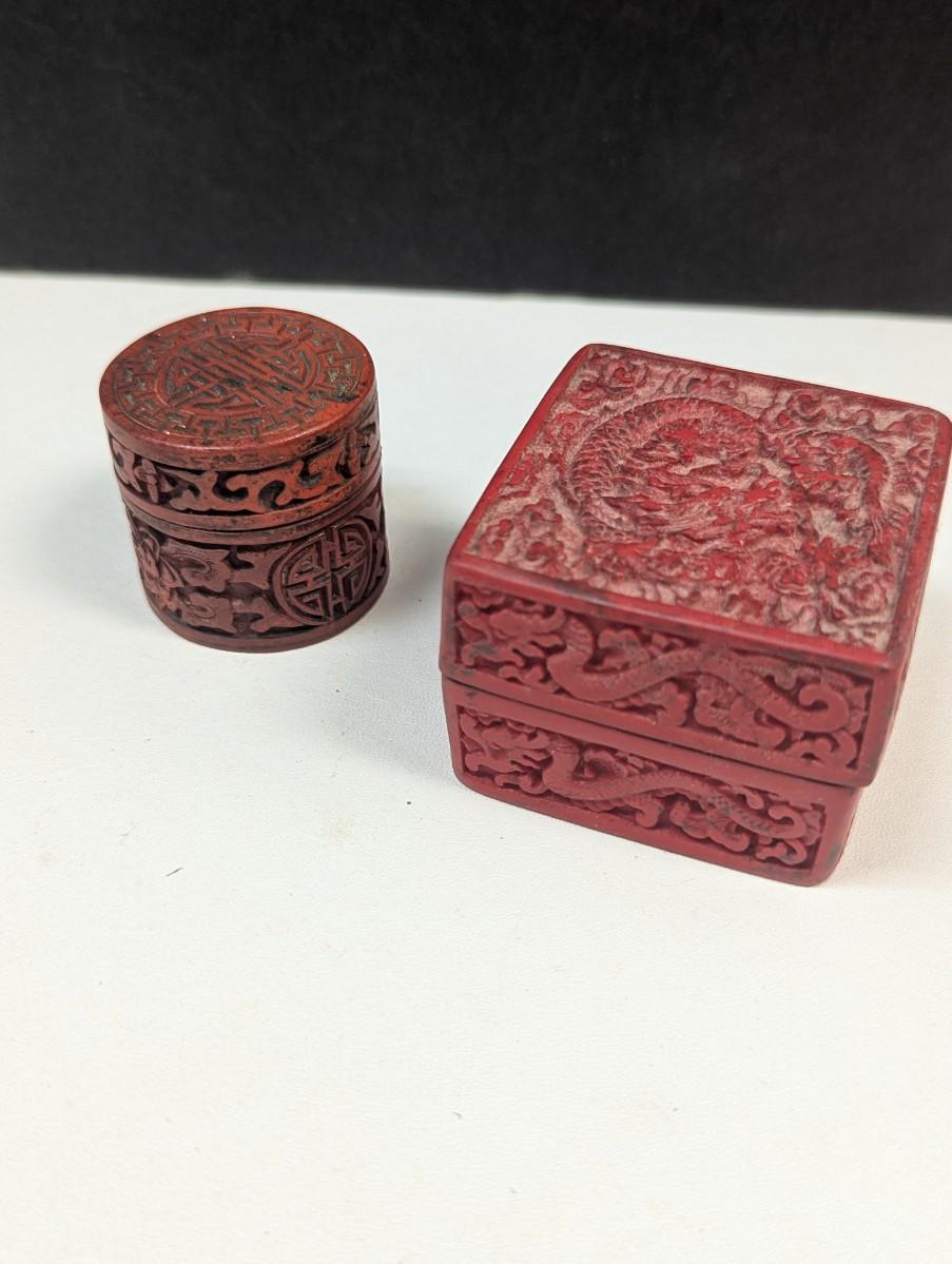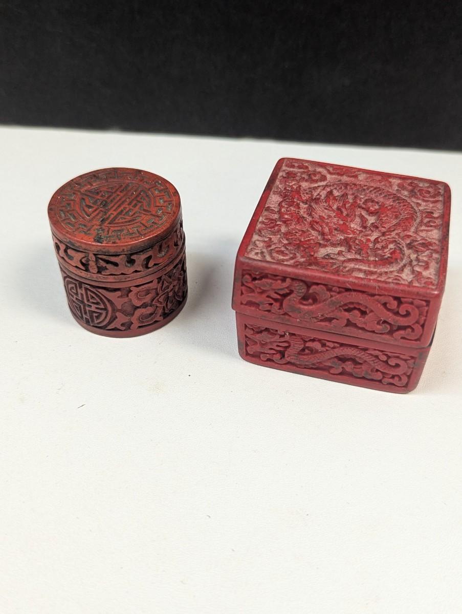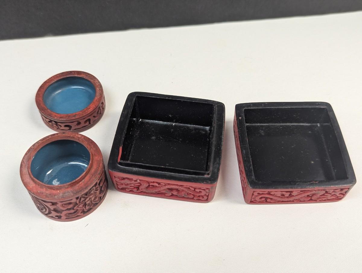 Asian Cinnabar Boxes Lacquer-Ware With Lids
