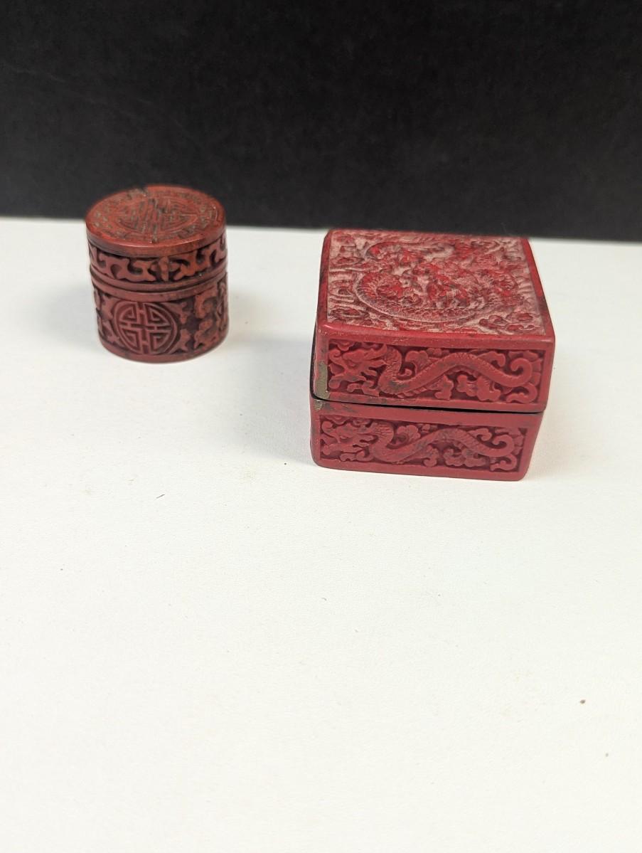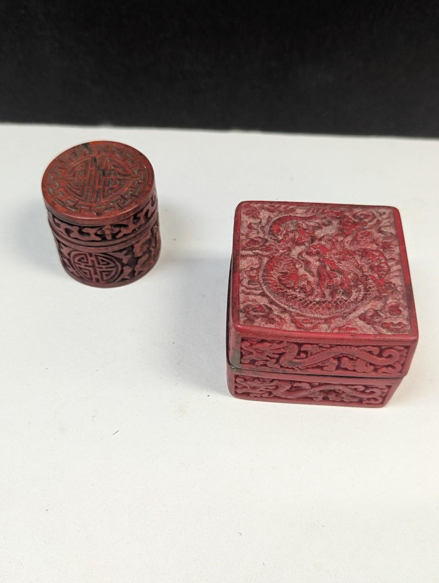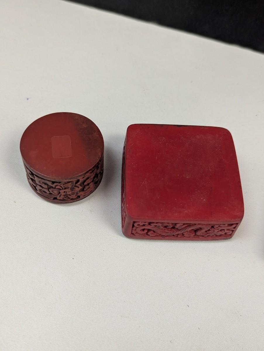 Asian Cinnabar Boxes Lacquer-Ware With Lids