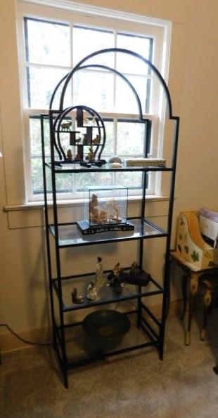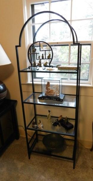 Asian Design Glass Shelf Metal Frame Stand 24"x14"x68" (No Contents)