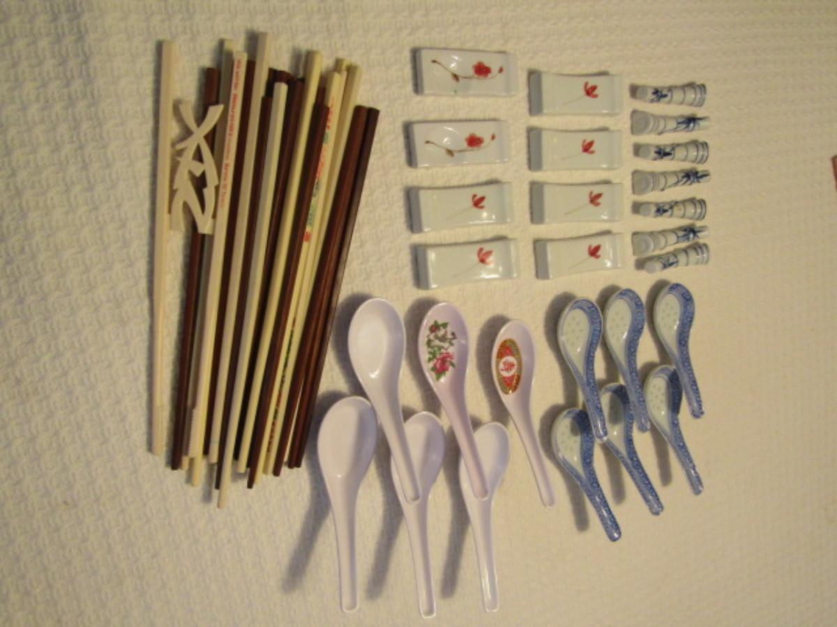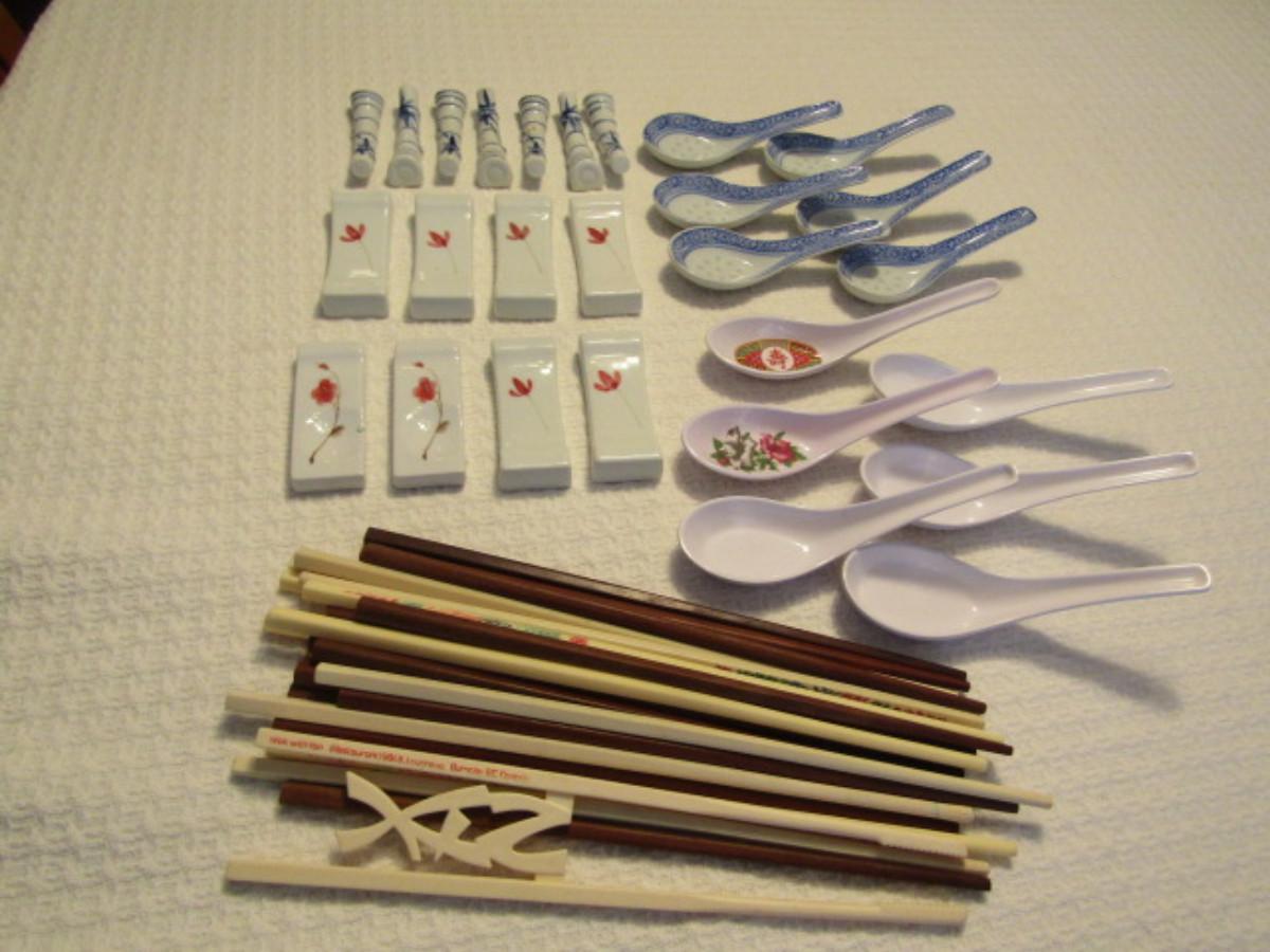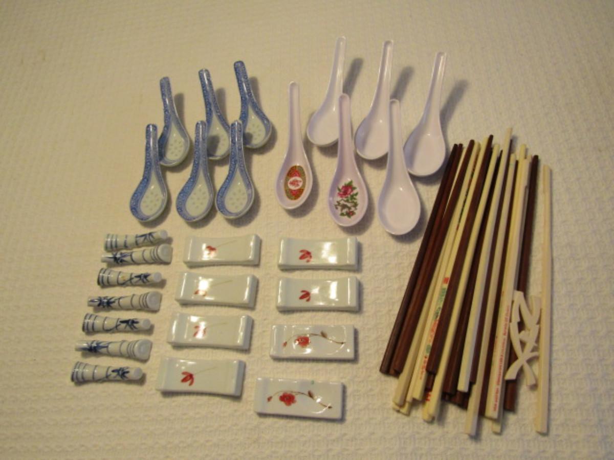 Asian Dinner Accessories- Soup Spoons and Chopsticks with Rests