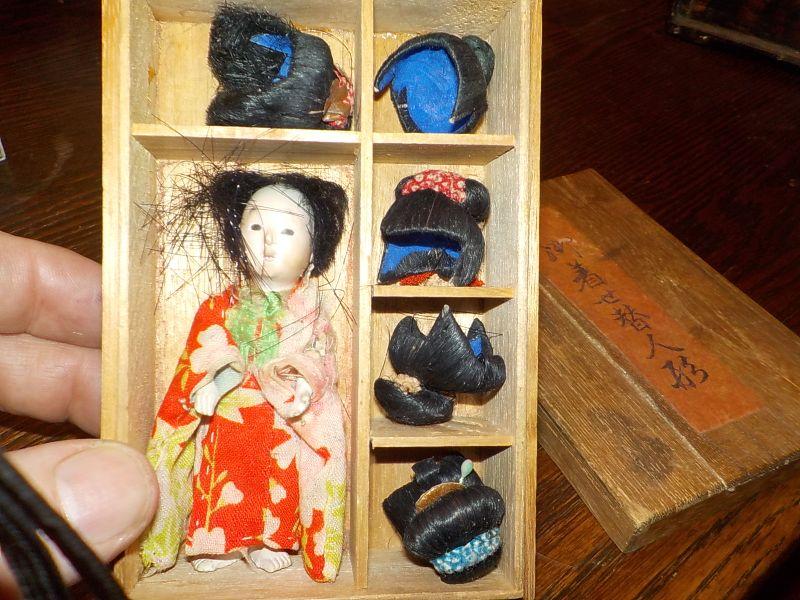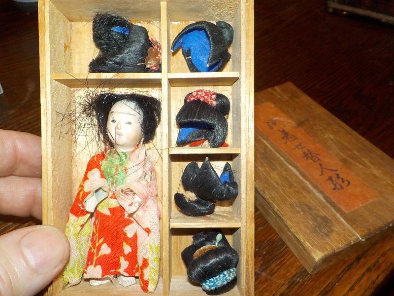 Toy doll has 6 wigs to change and it's own wooden box. Made in china.