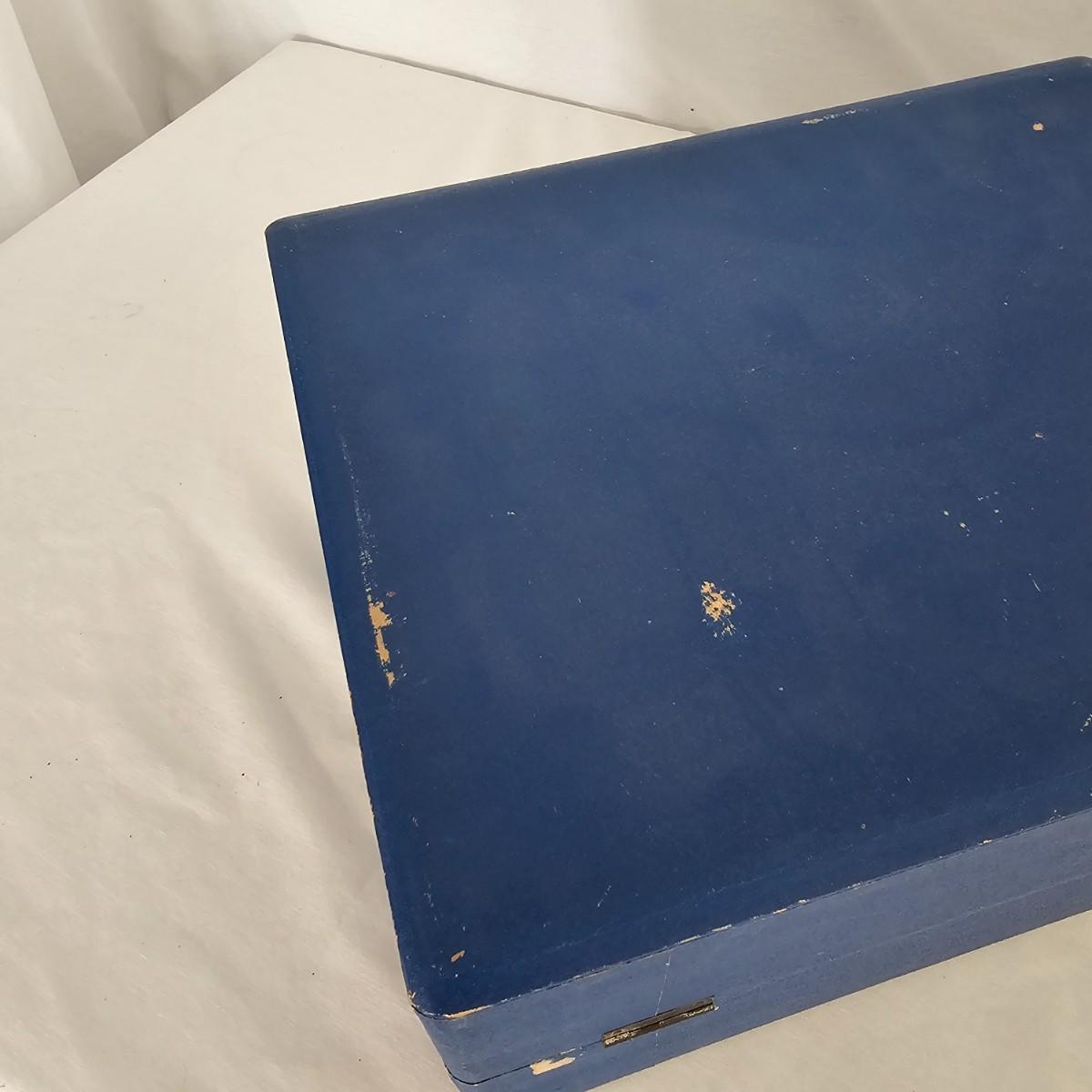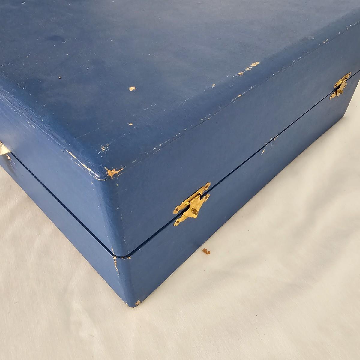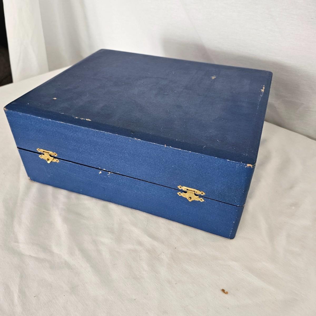 Lot includes five small plates and a larger bowl with wooden carrying case. All pieces appear to be enameled wood. Also includes a pair of wooden chopsticks. Bowl measures 9”D x 2”H.