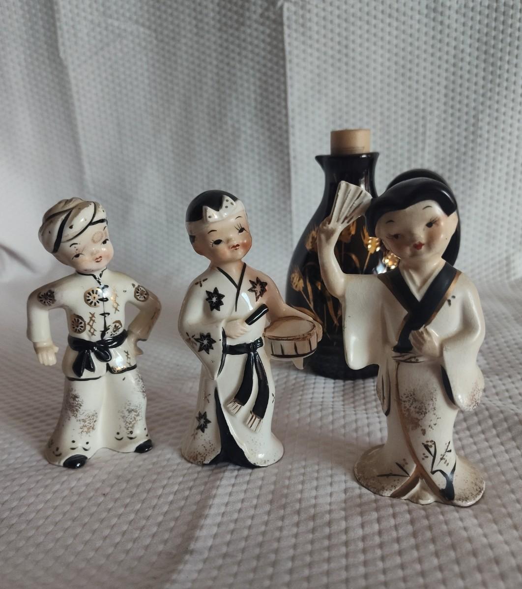 ASIAN FIGURINES AND HAND PAINTED JUG
