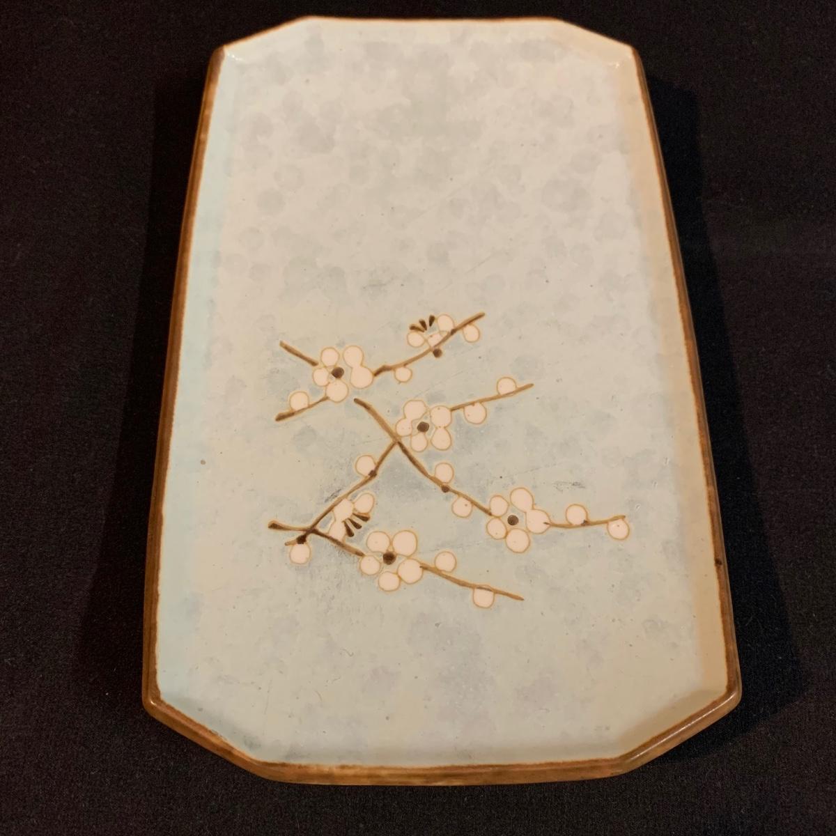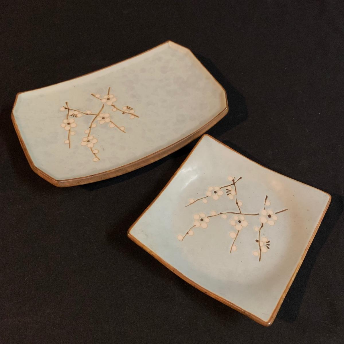 Two lovely baby blue colored Asian-style ceramic dishes. The rectangular dish measures 8.5” x 5.75”. Both dishes are in excellent condition. Shipping available.