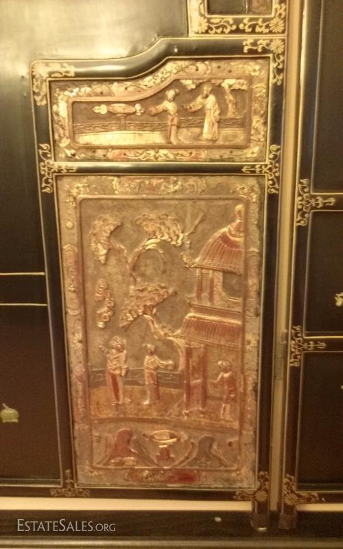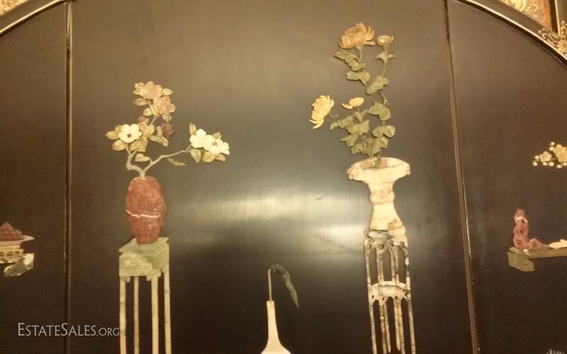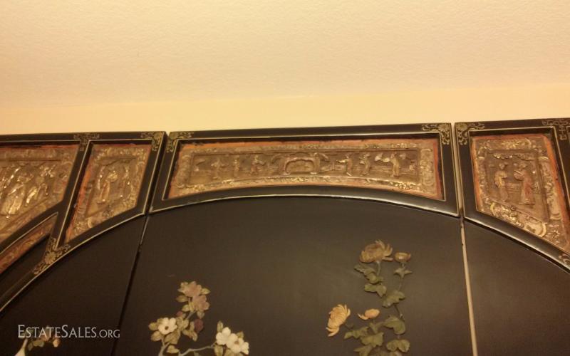 This beautiful piece comes apart in several sections. It is embedded with various stones and ornamental items to give it a textured look. It is very large at 115" long by 75" high. More detailed pictures will be posted of this unique item!