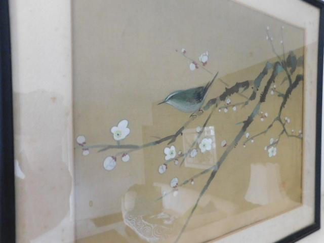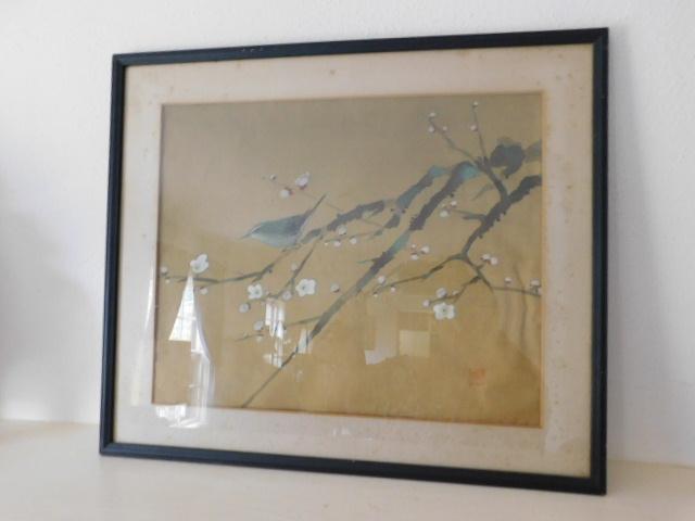 Asian Bird on Blossoming Branch Framed Art 20"x 17"