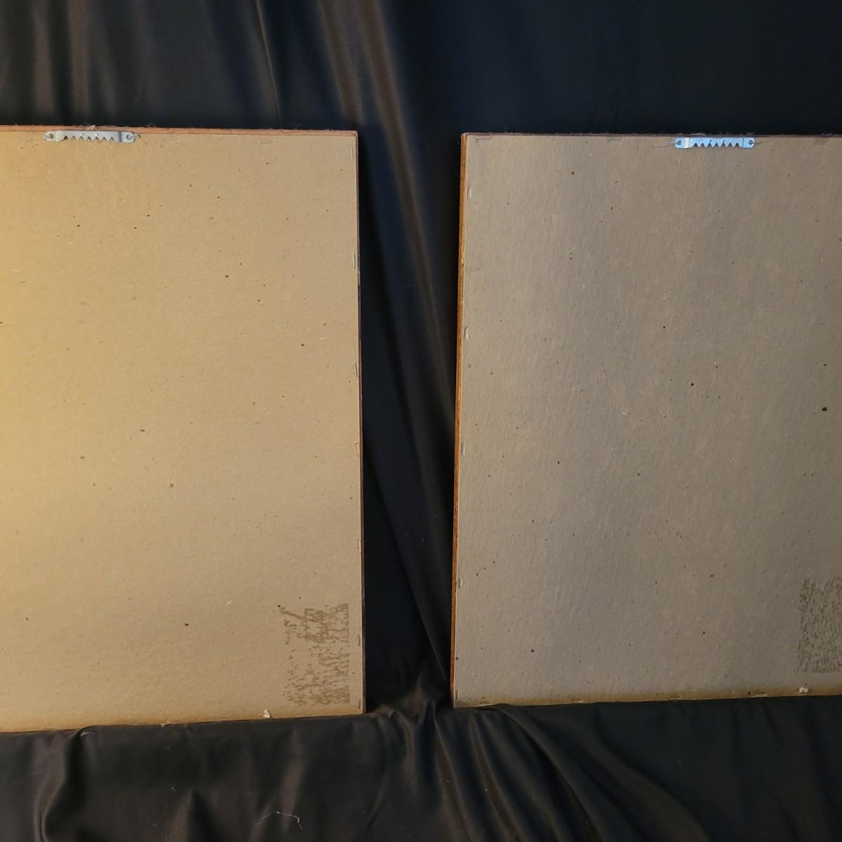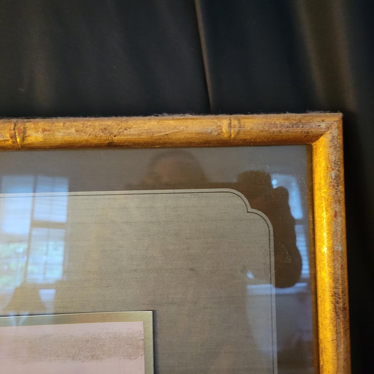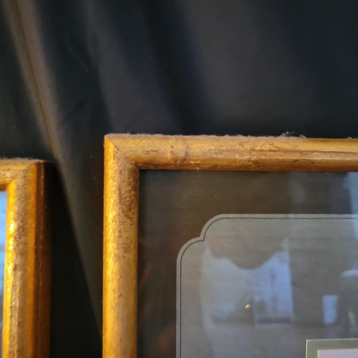 A pair of Asian art prints top mounted on a mat with a bird theme. Framed in a bamboo gold leaf frame with an outer dimension of 17" x 21". Shipping Available.