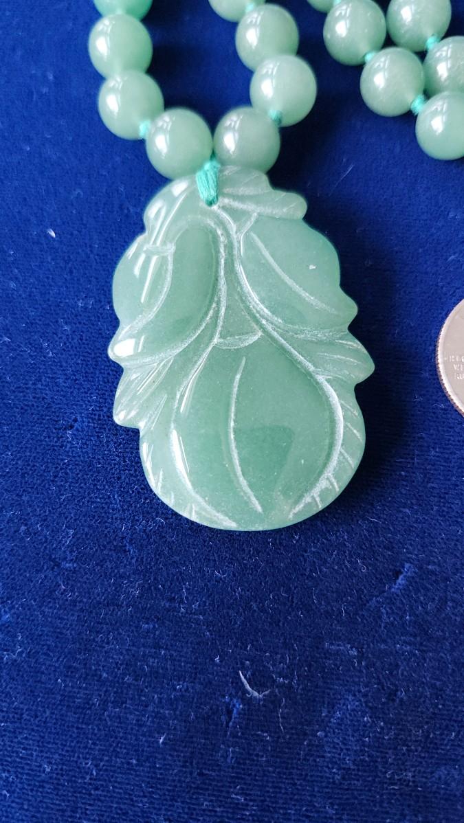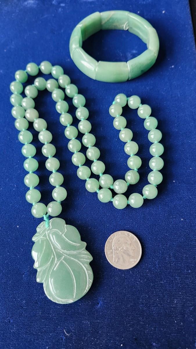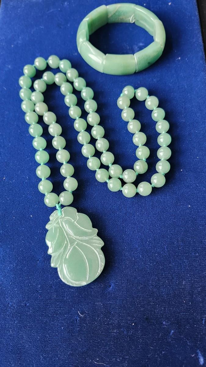 Asian Green Jade Beaded Necklace and Cuff