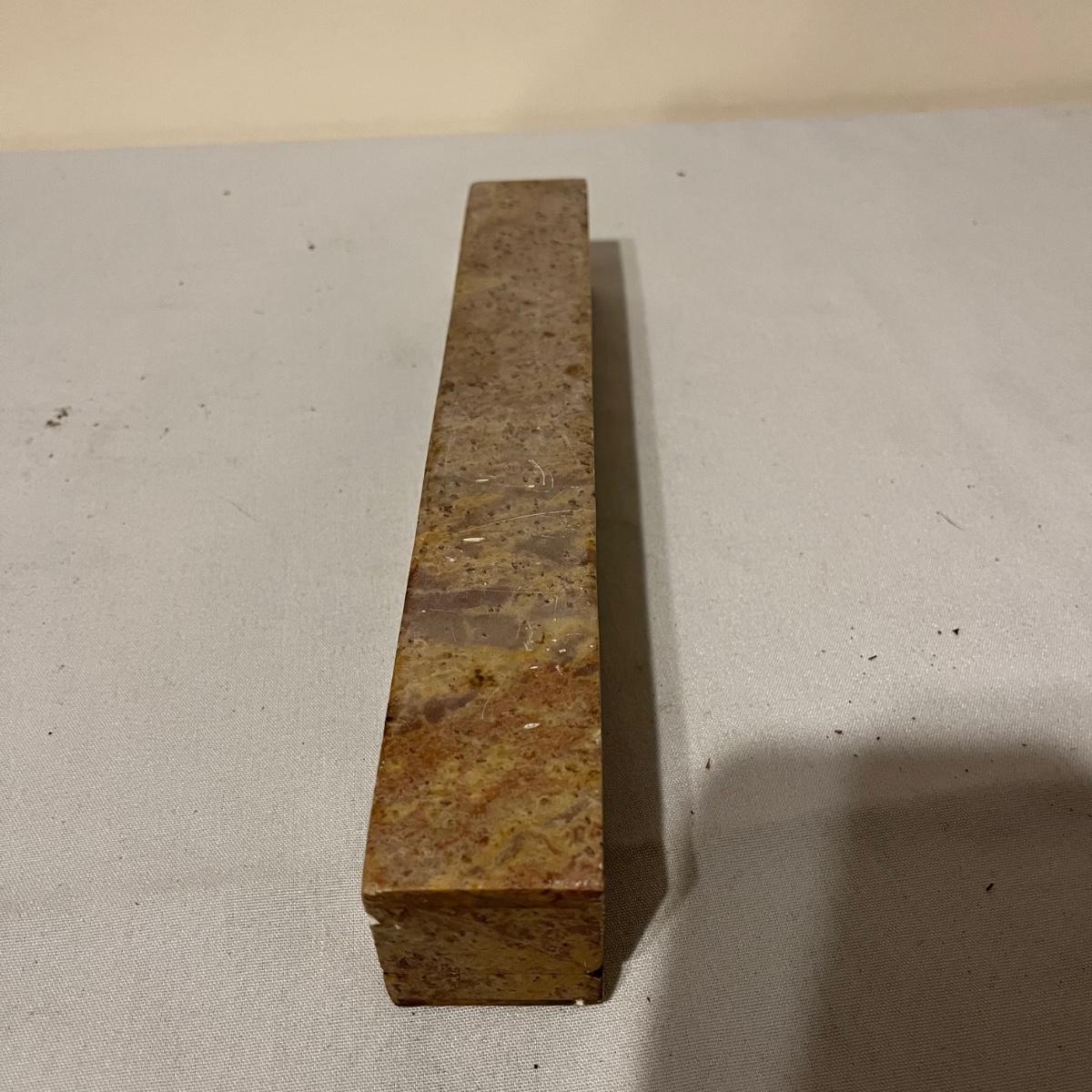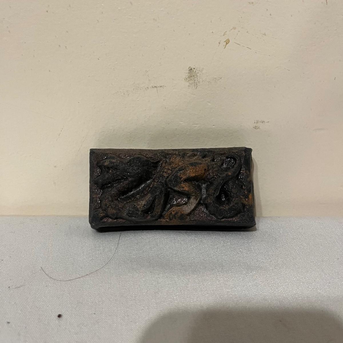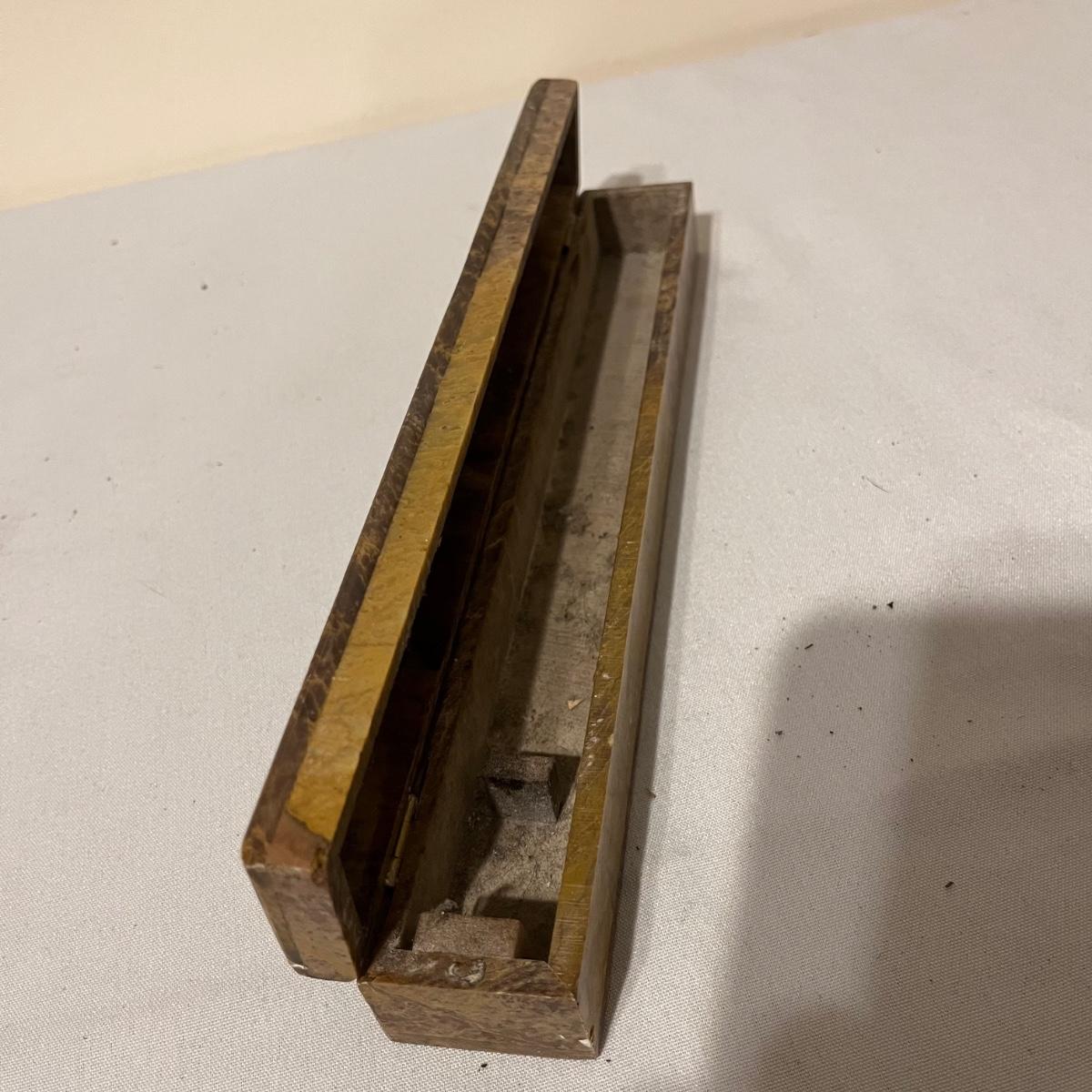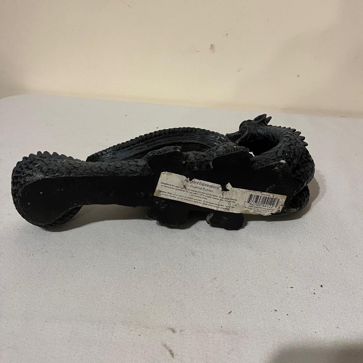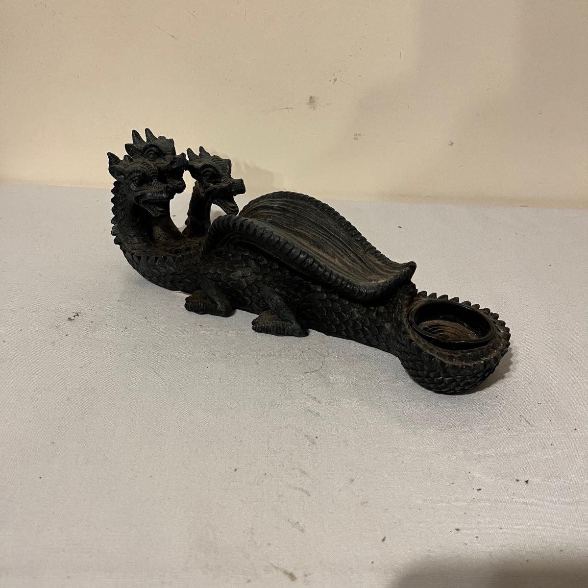 Lot includes stone box, wooden box, plastic double box with four drawers, resin dragon incense holder, paper and wood fan, playing cards and a resin dragon block. Double box measures 3.26” x 6.75” x 3.25”.