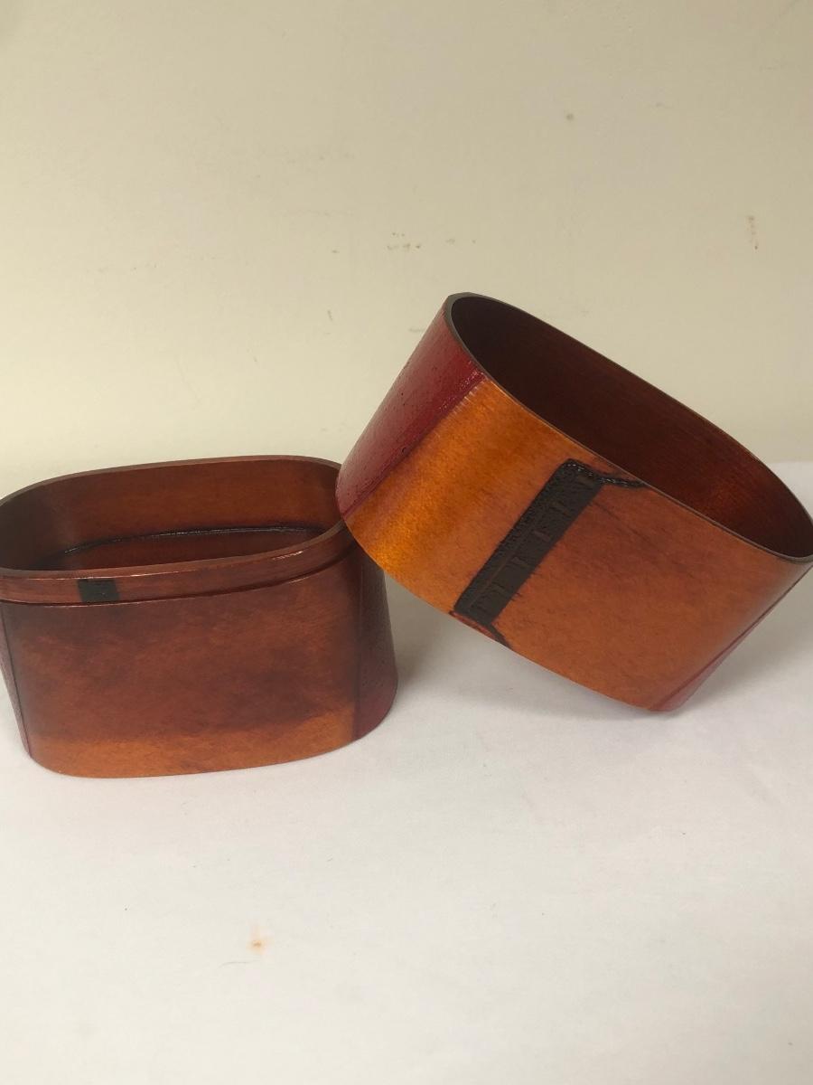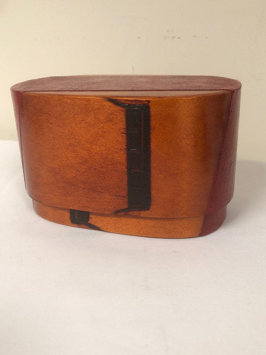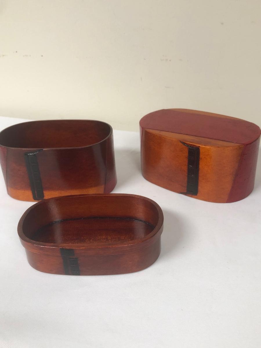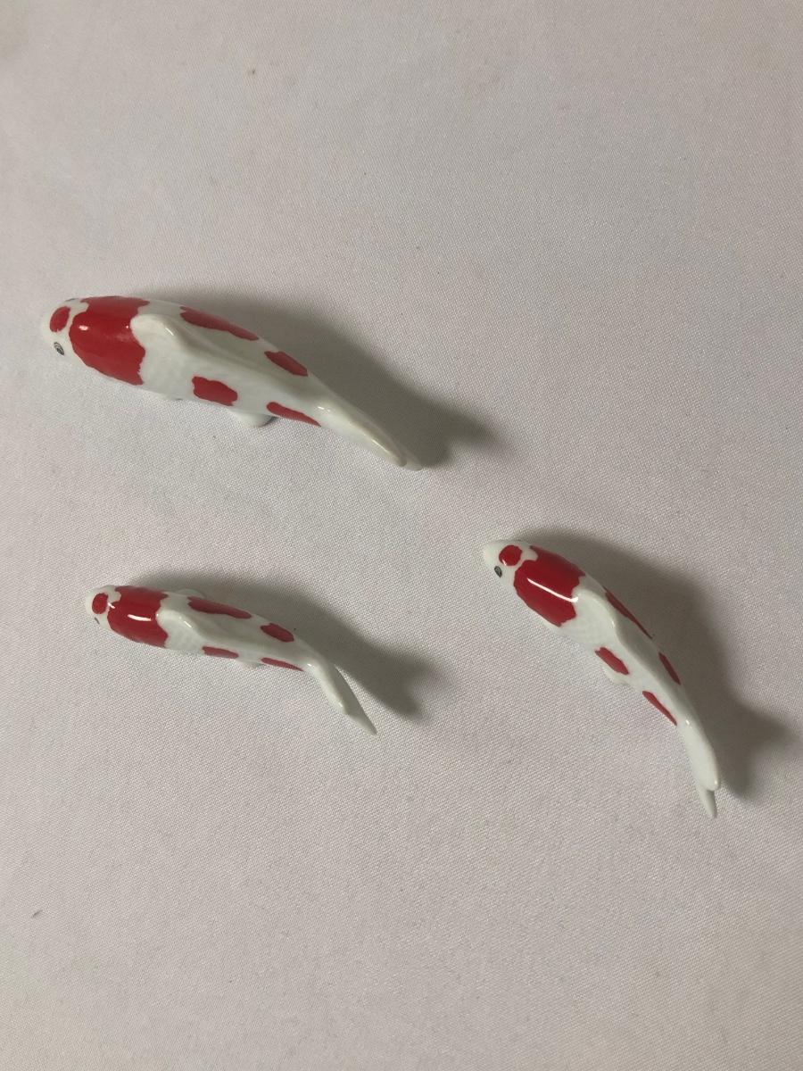 This lot includes three heavy glazed clay coy fish (longest fish is 4” long), a ceramic bowl (7” in diameter) with a raised center and a keepsake box (7” x 5” x 4”). The box is made of a light wood with different stains and finishes and has an insert tray to divide the inside. Shipping Available.