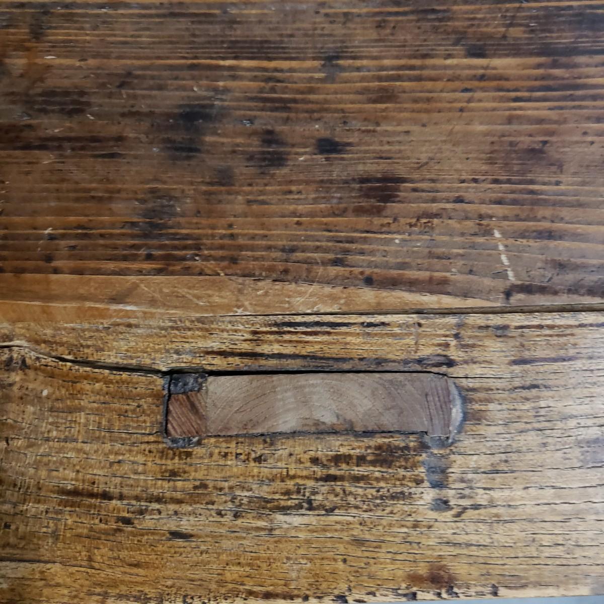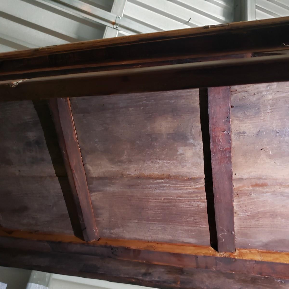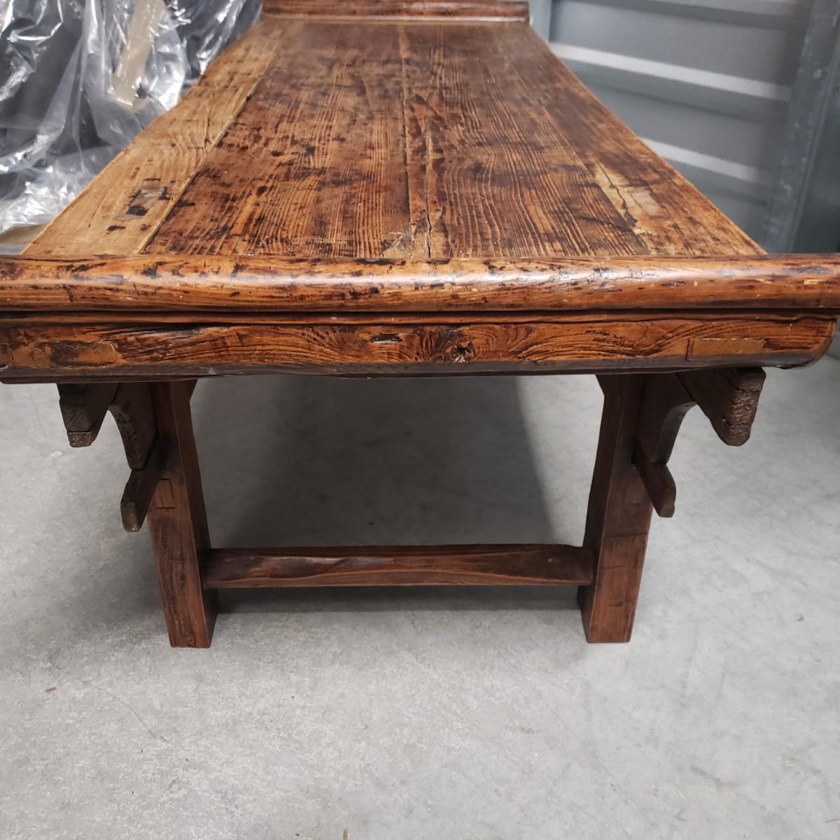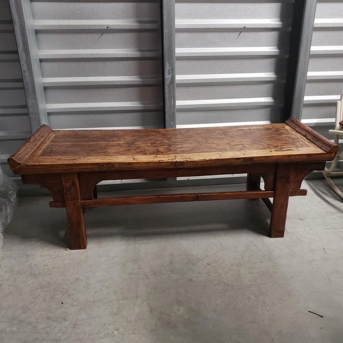 This solid wood table measures 50" x 20" x 19"H. It has Asian inspired design elements. This piece is located in the back of a full unit and will be available for a later pick up time.