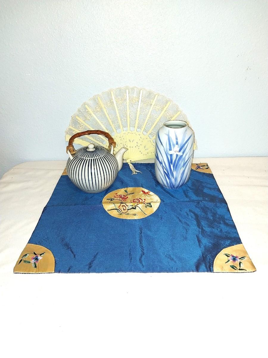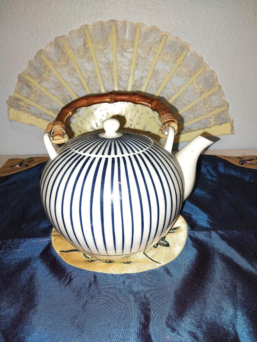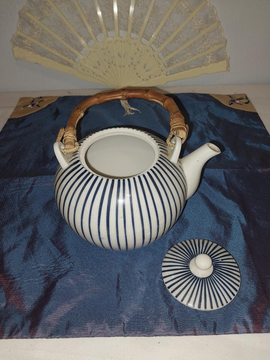 ASIAN KETTLE WITH BAMBOO HANDLE AND VASE