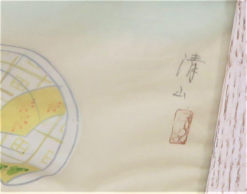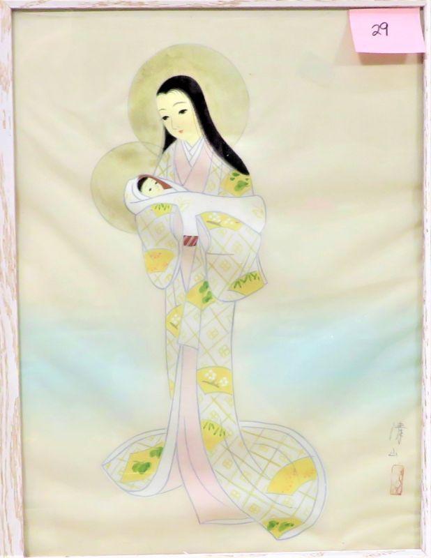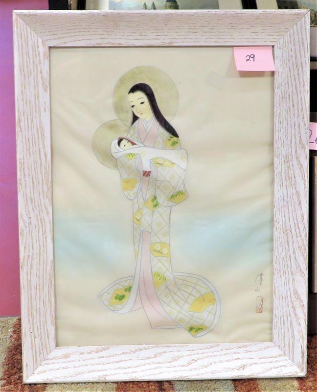 Asian Lady on Silk Wood Framed Art VINTAGE