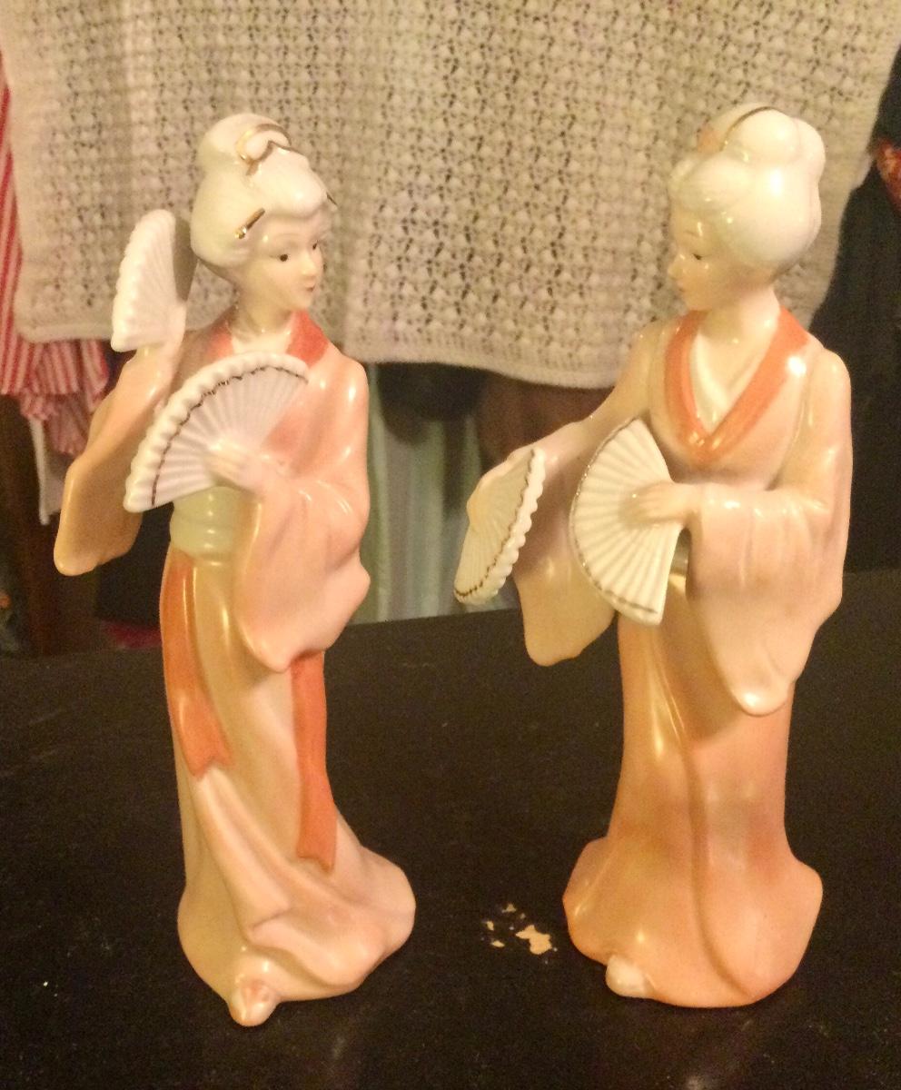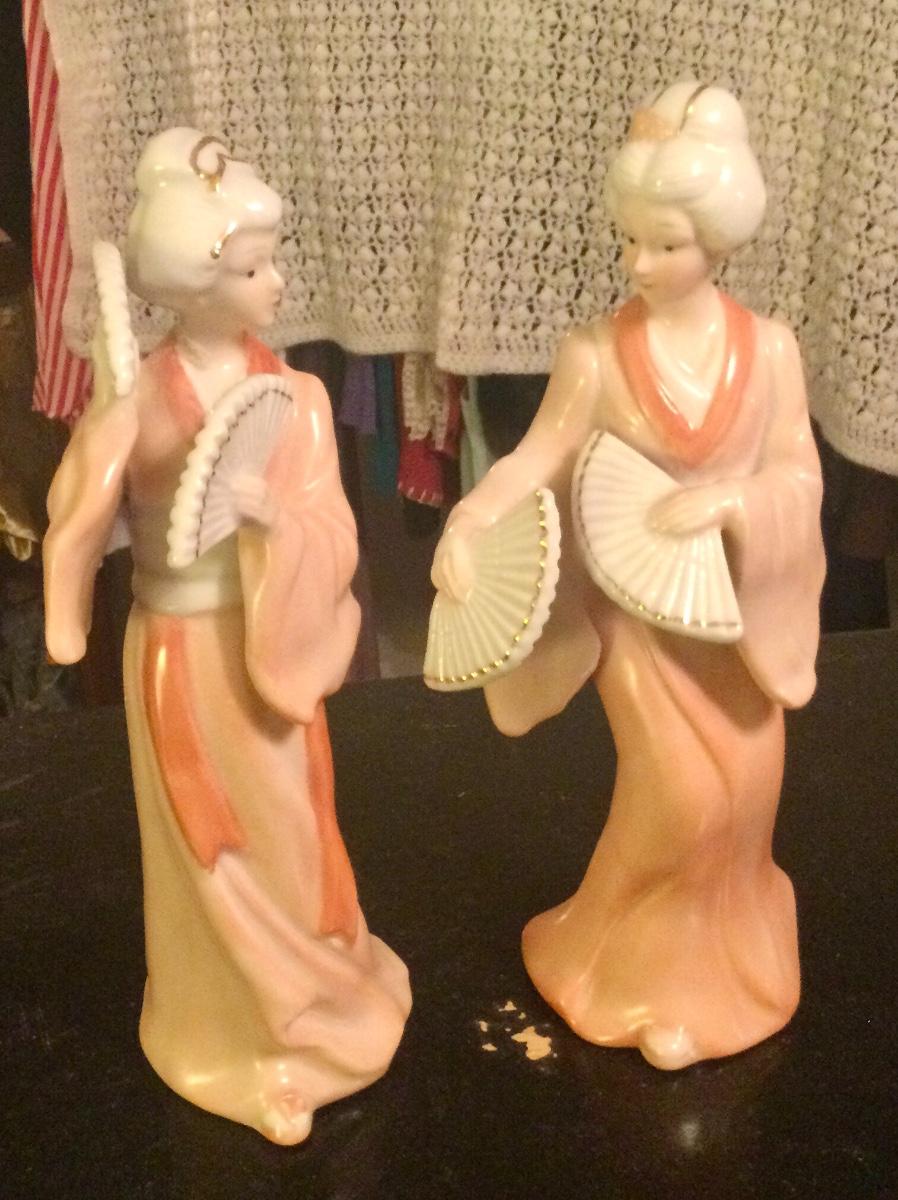 Asian lady’s with fans approximately 7” tall