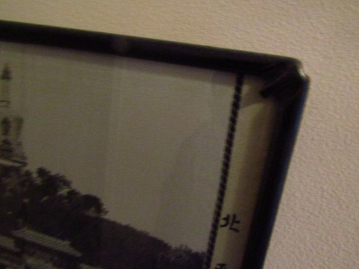 Asian Landscape on Linen- Framed Under Glass. Approx 10" x 17".