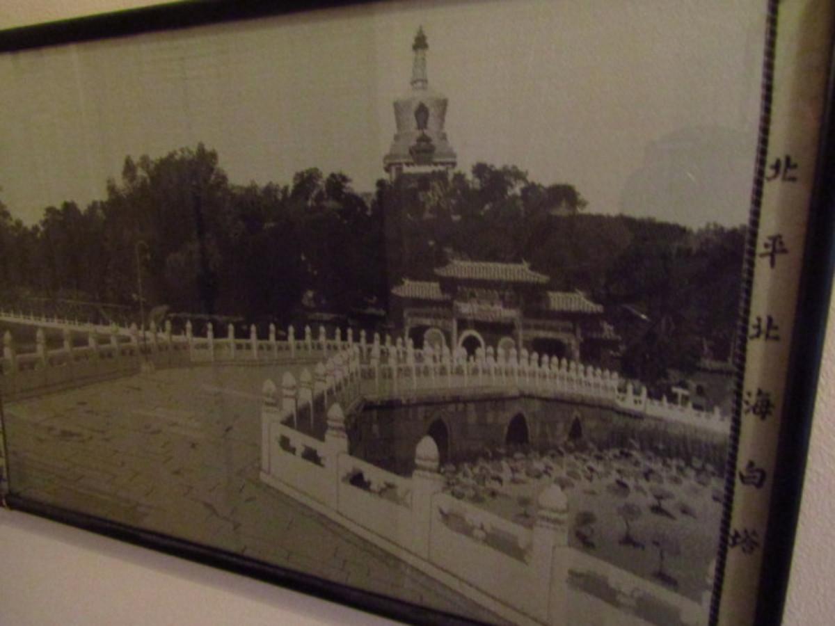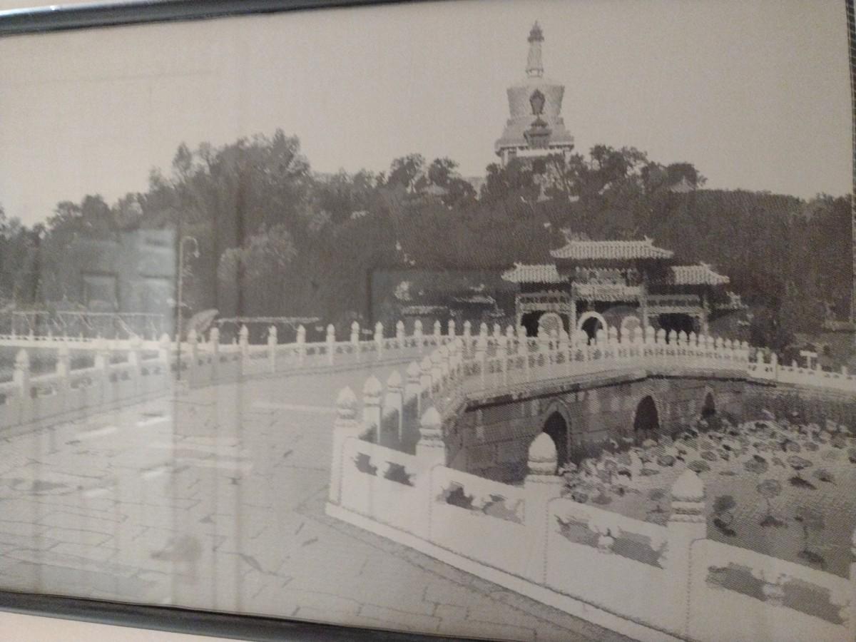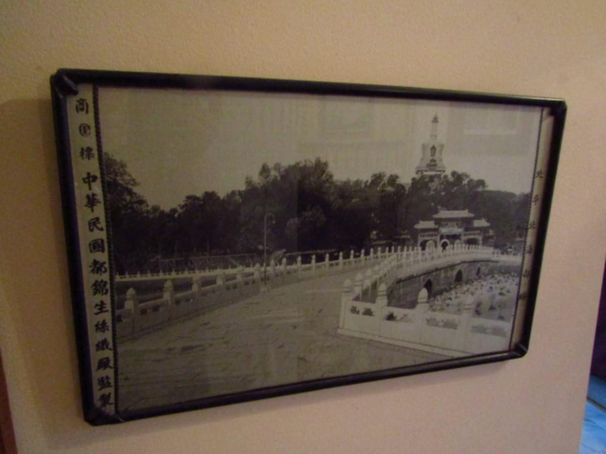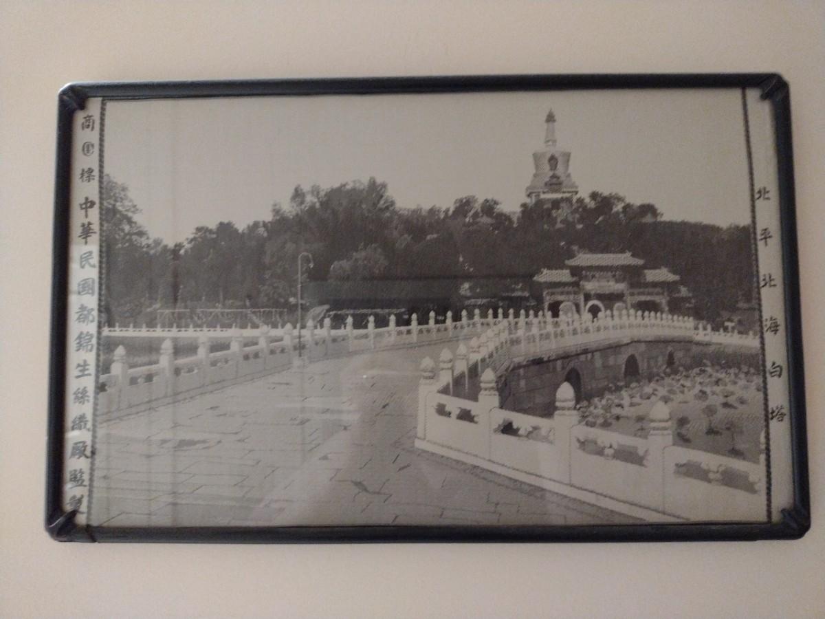 Asian Landscape on Linen- Framed Under Glass